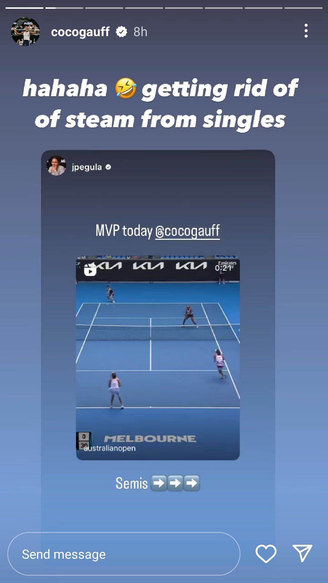 "MVP today, Coco Gauff," Jessica Pegula wrote.