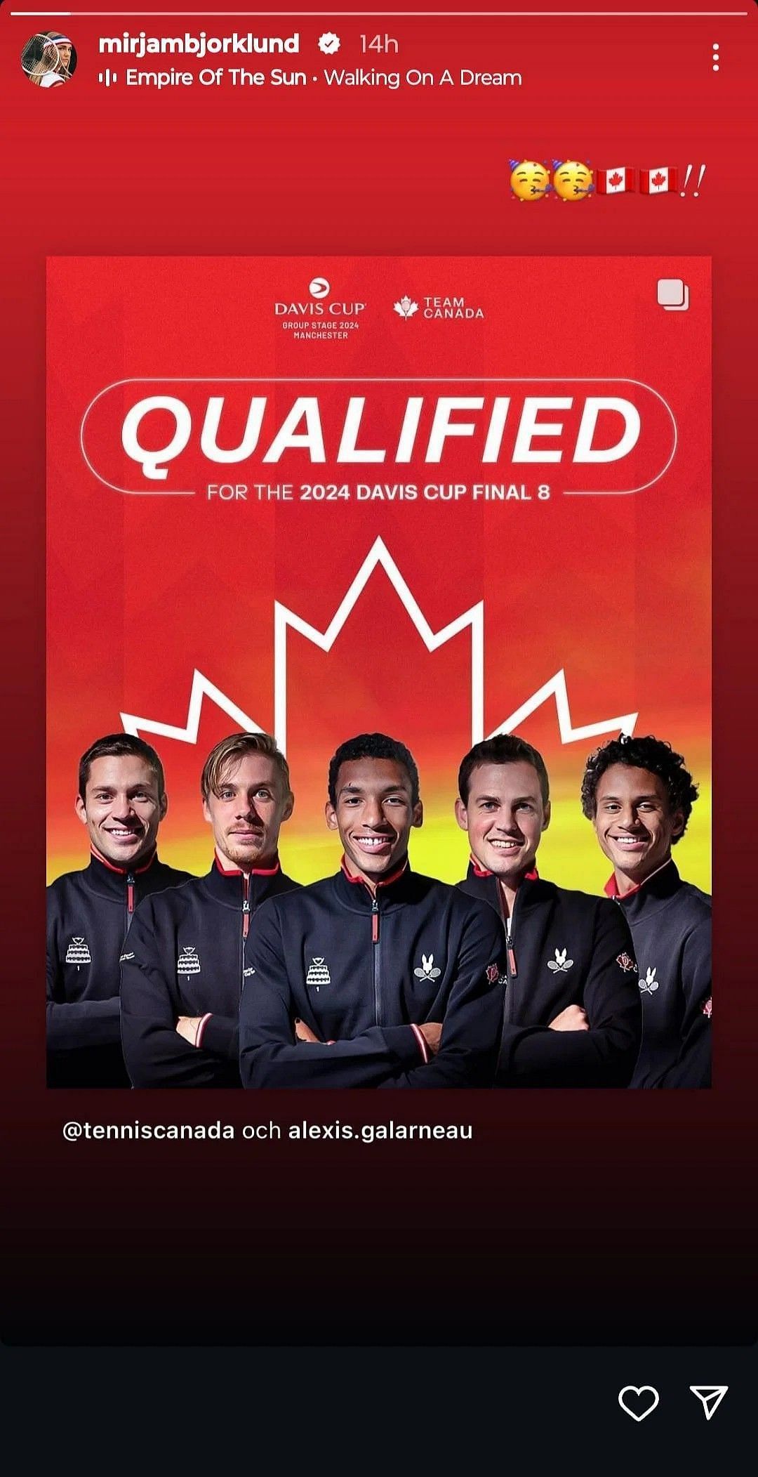 Denis Shapovalov's fiance Mirjam Bjorklund reacted to Canada reaching the Davis Cup knockouts