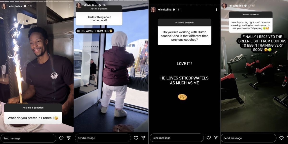 Svitolina recently held a Q&A session on social media where she invited her fans and followers to post their questions. She was asked to reveal her favorite thing in France among other things. She posted a picture of her French husband Monfils in response.