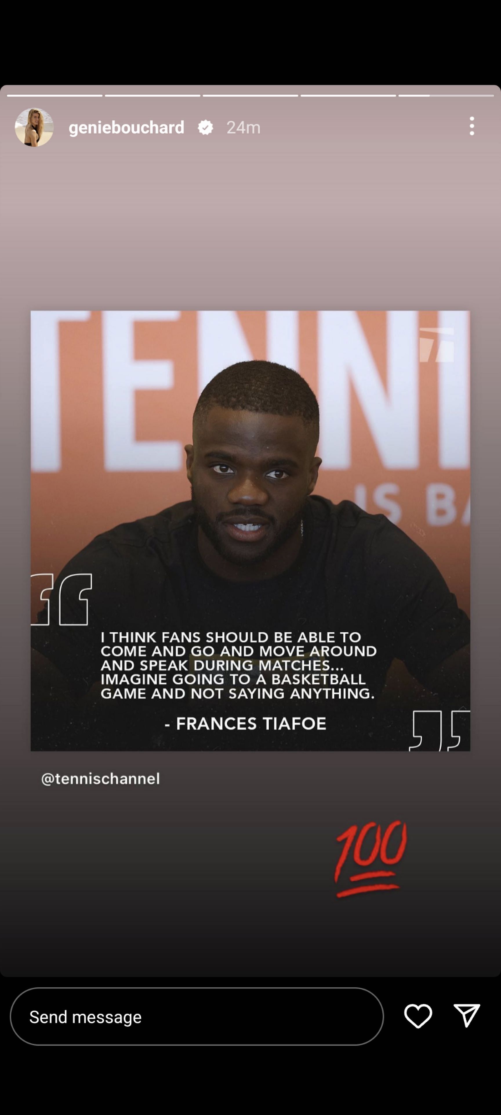 Bouchard wholeheartedly agreed with the statement and took to social media to share Tiafoe's opinion.