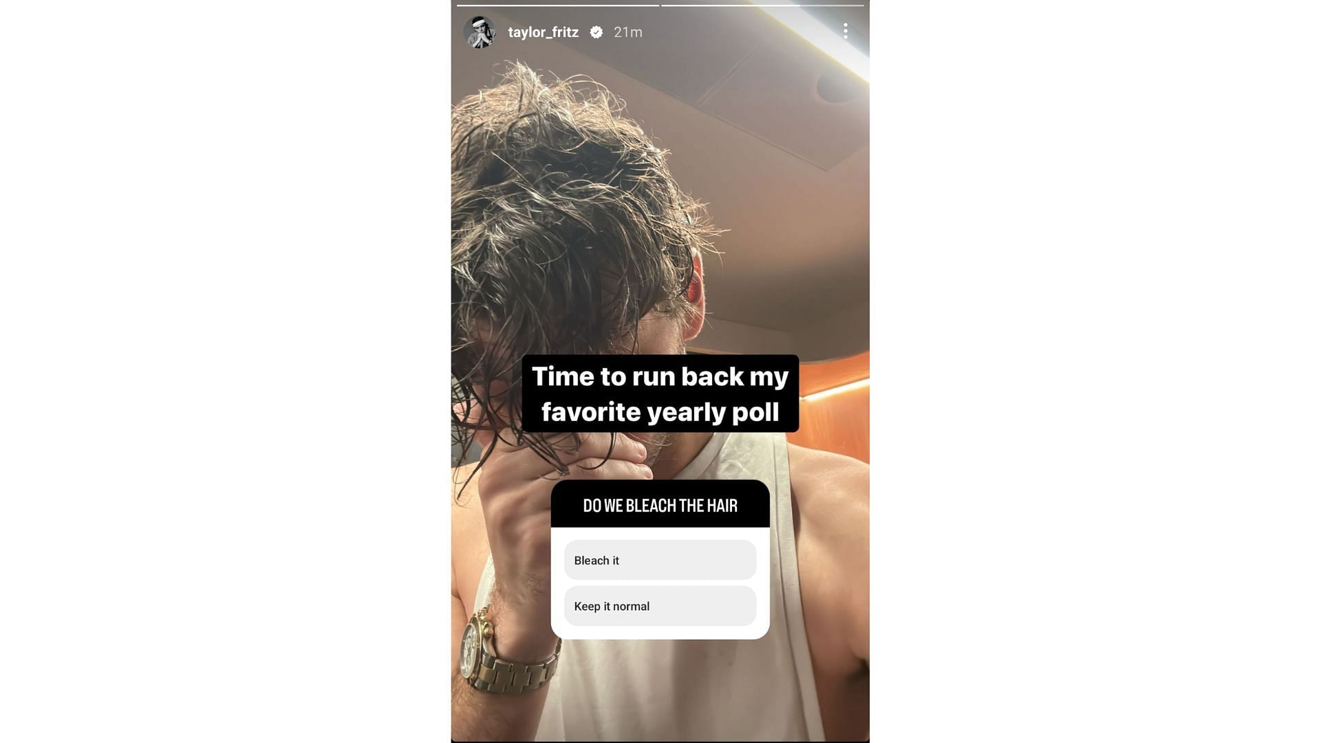 Taylor Fritz can't decide if he should bleach his hair or "keep it normal," and so has put out a poll on Instagram.