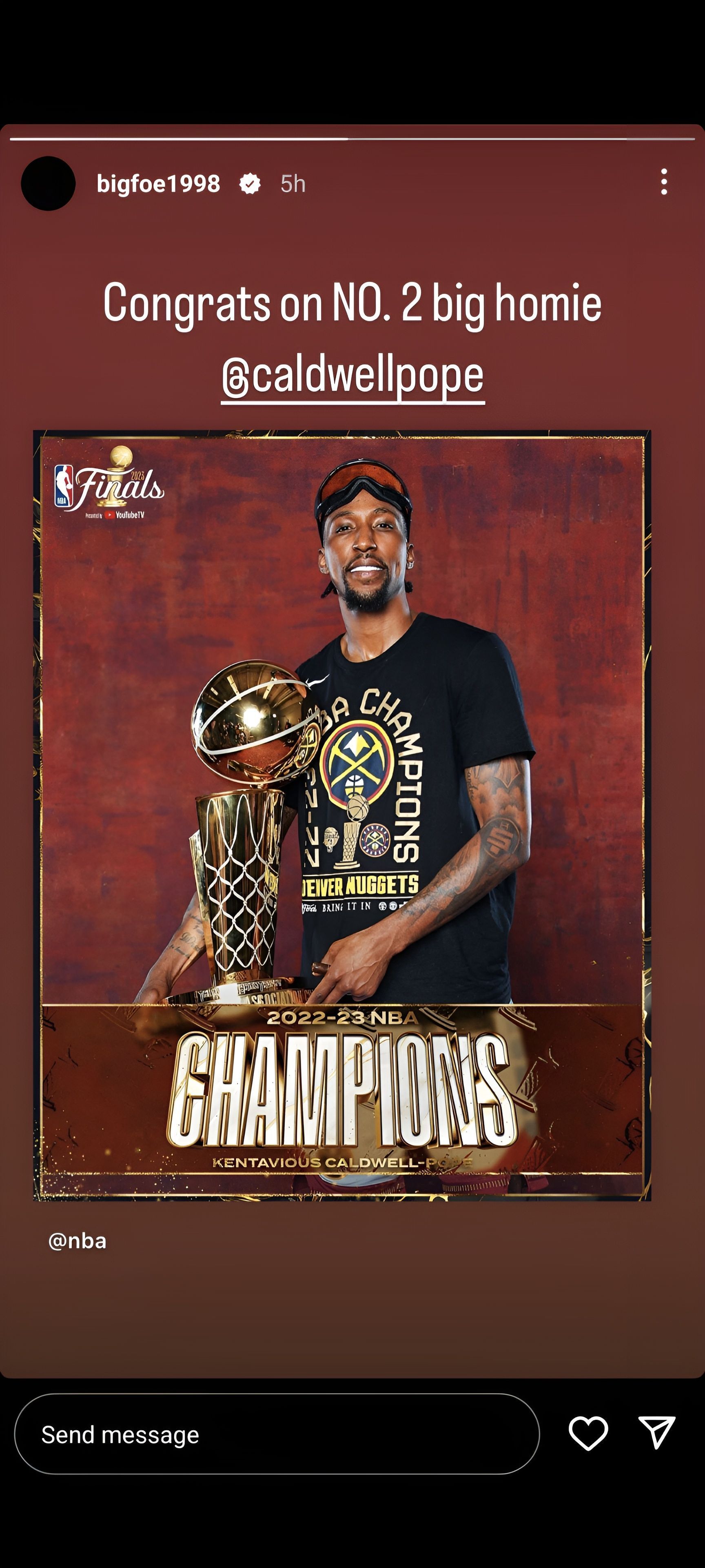 Tiafoe posted a photo of Caldwell-Pope holding the NBA trophy on his Instagram story on Tuesday, July 13, and wrote: