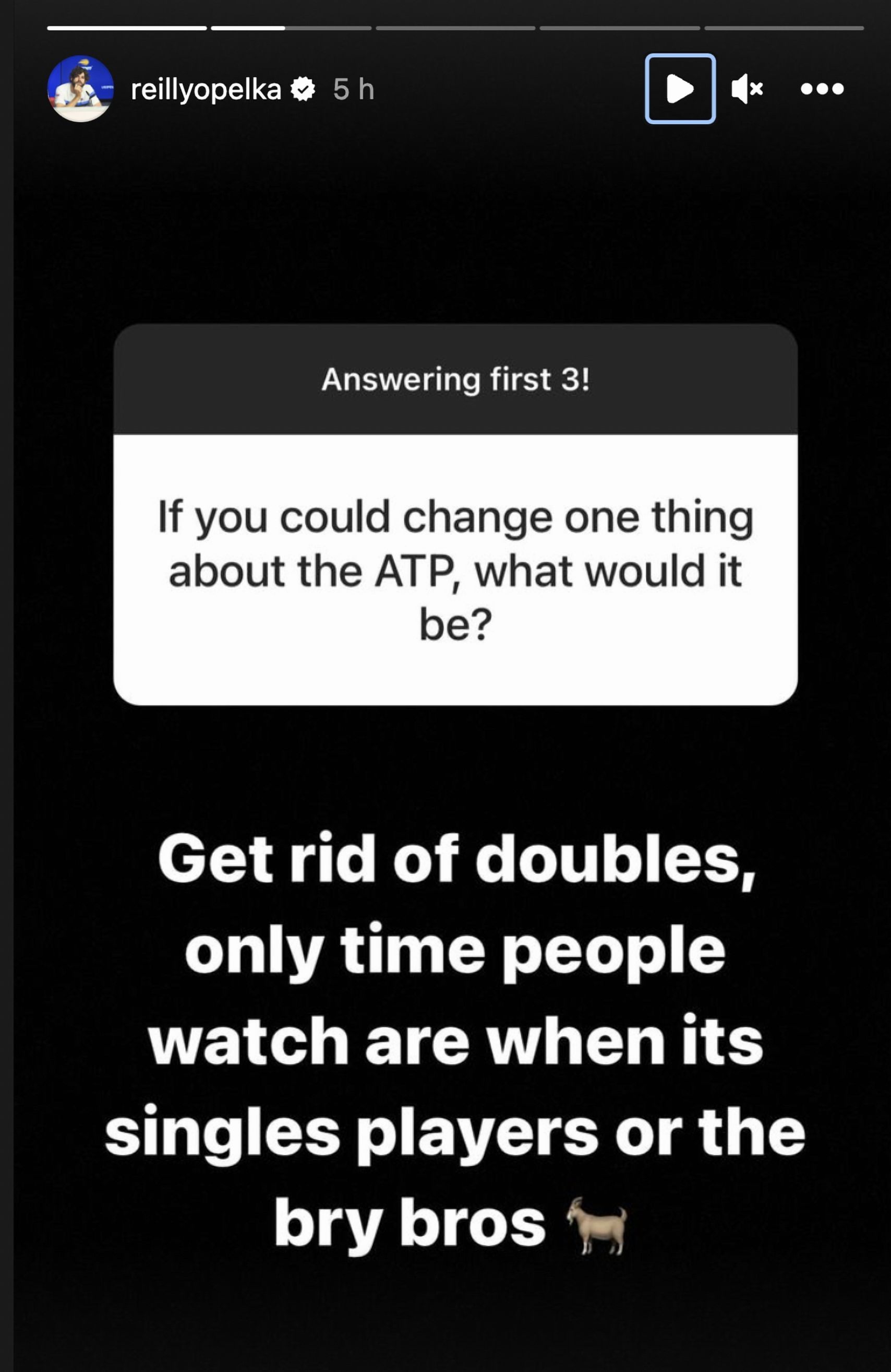 "Get rid of doubles, only time people watch are when its singles players or the bry bros," he wrote on his Instagram story.