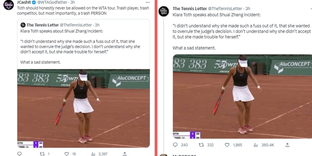 Amarissa Kiara Toth's statement about the incident between her and Zhang Shuai, which led to the latter retiring in the first round of the Hungarian Grand Prix, has elicited sharp criticism from tennis fans on social media.