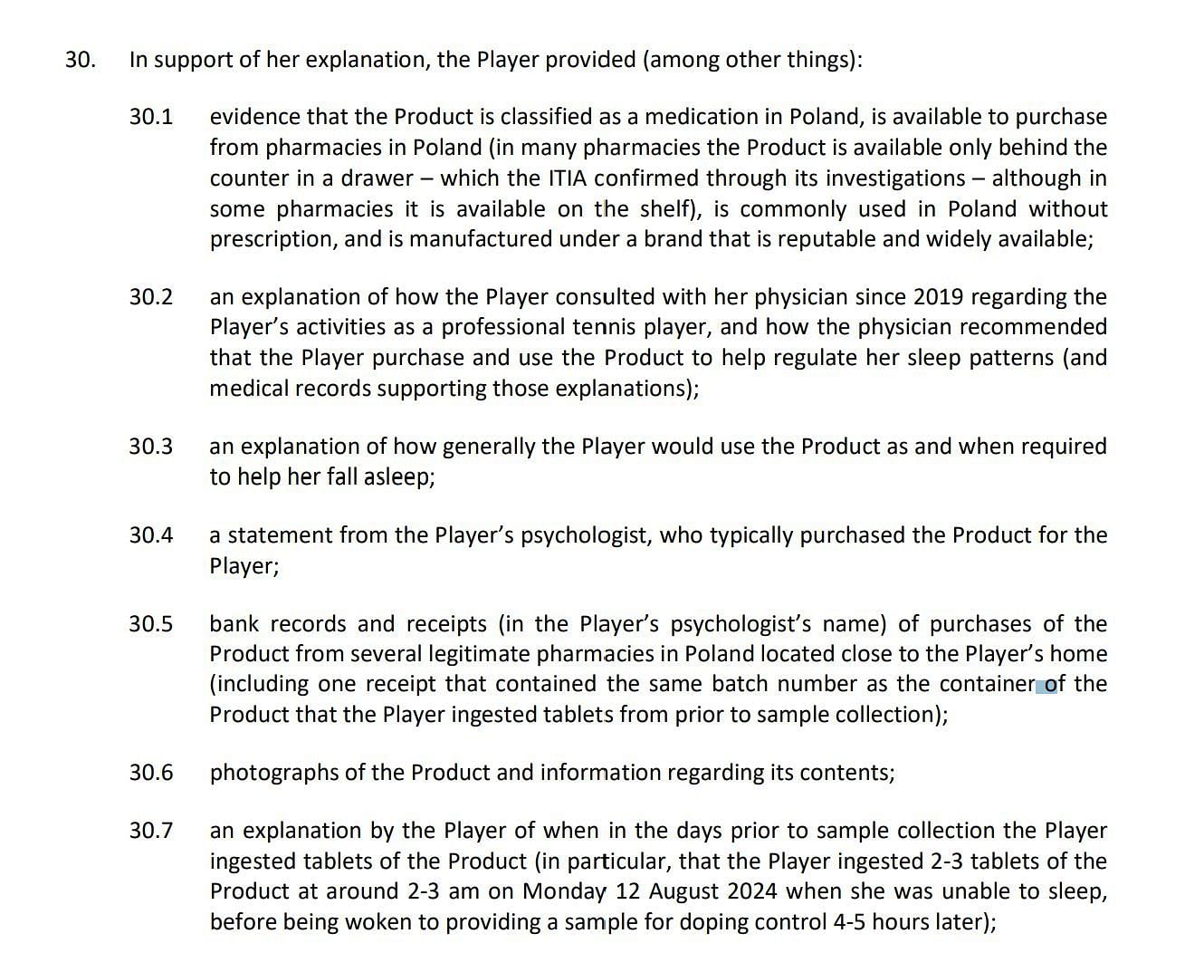 Based on ITIA's ruling, Swiatek's longtime team member and compatriot Daria Abramowicz, who serves the five-time Major winner in the capacity of a sports psychologist, used to purchase the medication on behalf of the Pole. Abramowicz also provided a statement of her own to the ITIA, according to the information presented in the official ruling.