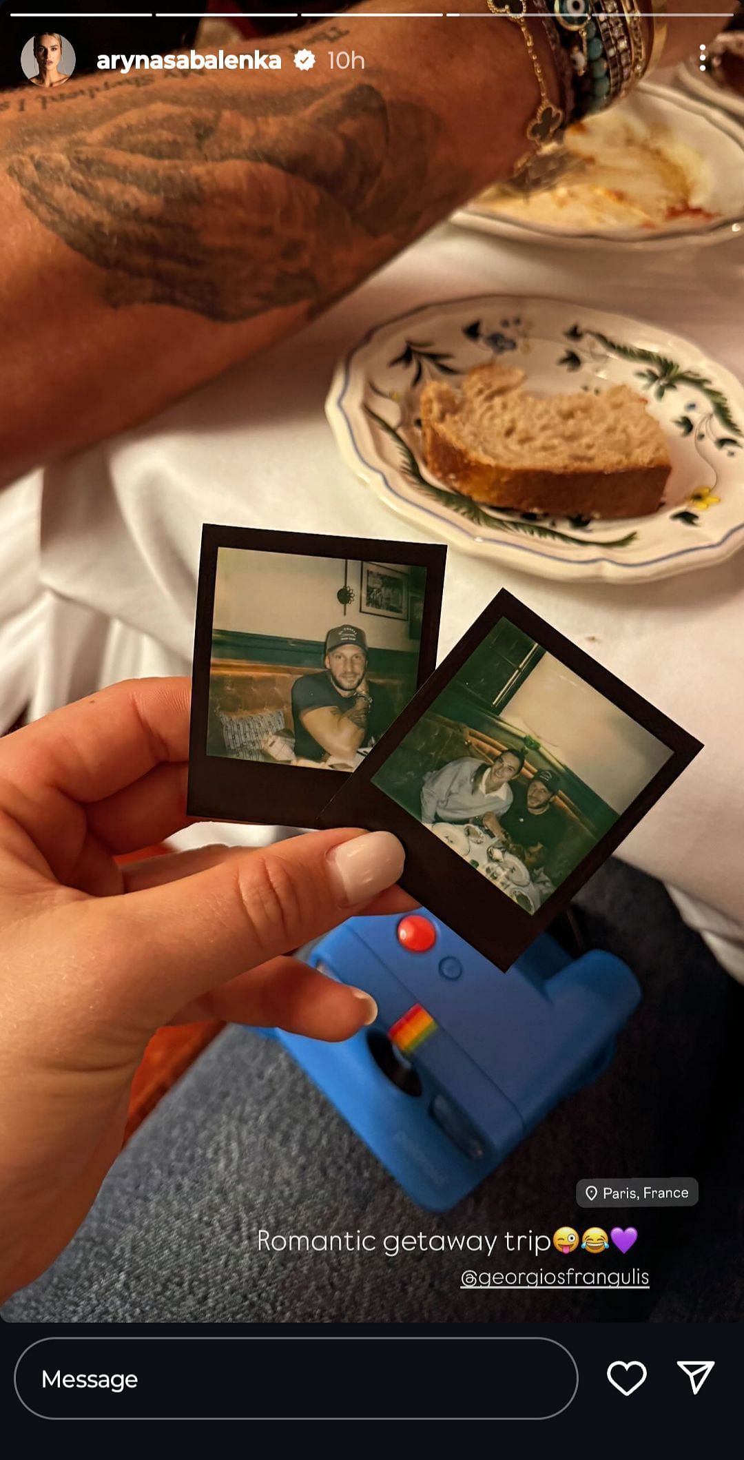 The story also contained a picture of Sabalenka holding two polaroids, one of Frangulis and another of the couple cozying in a corner of a restaurant. She captioned it: