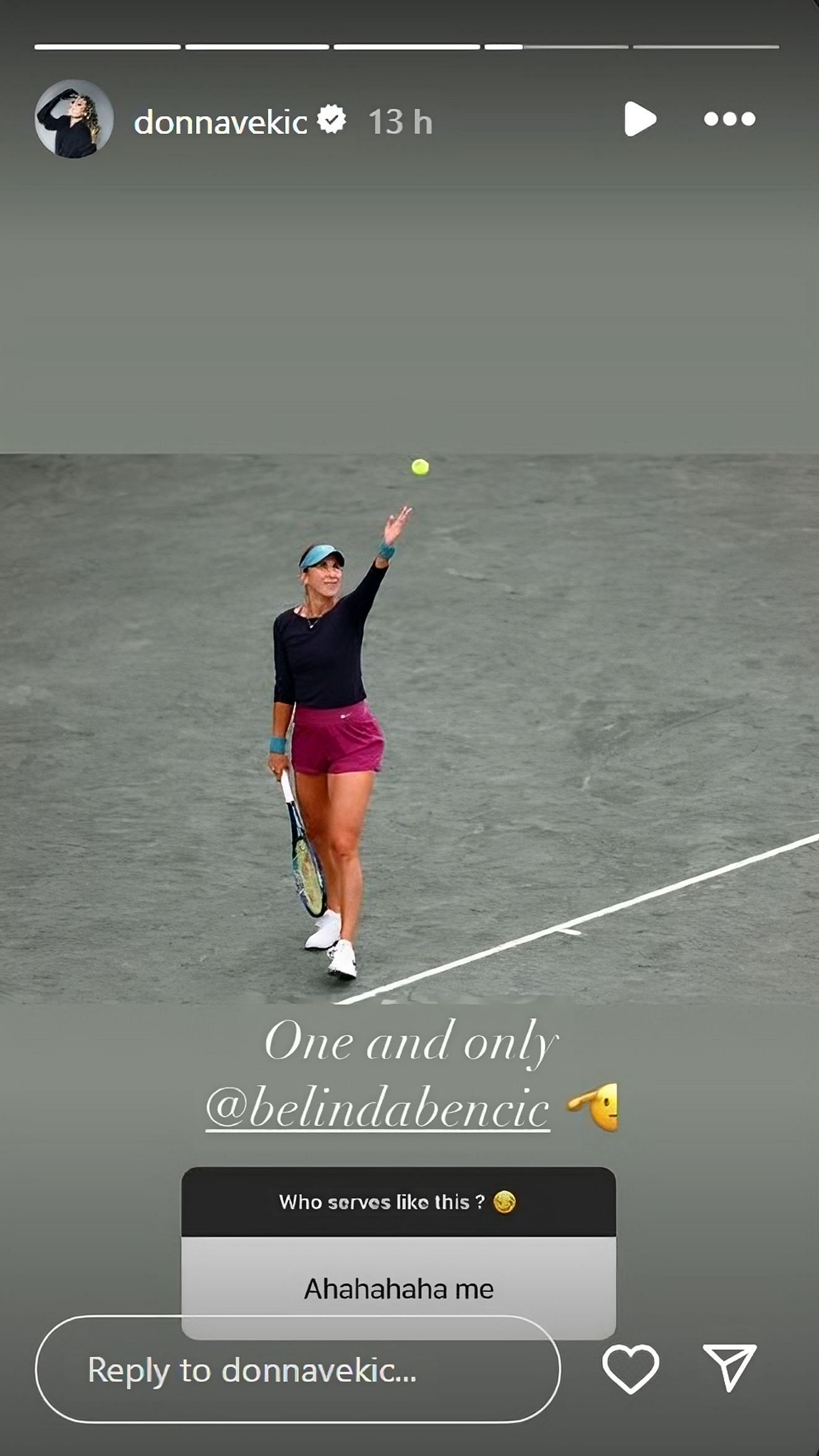 Vekic then shared Bencic’s response on her Instagram story and also posted a picture of Bencic in a similar serving pose.