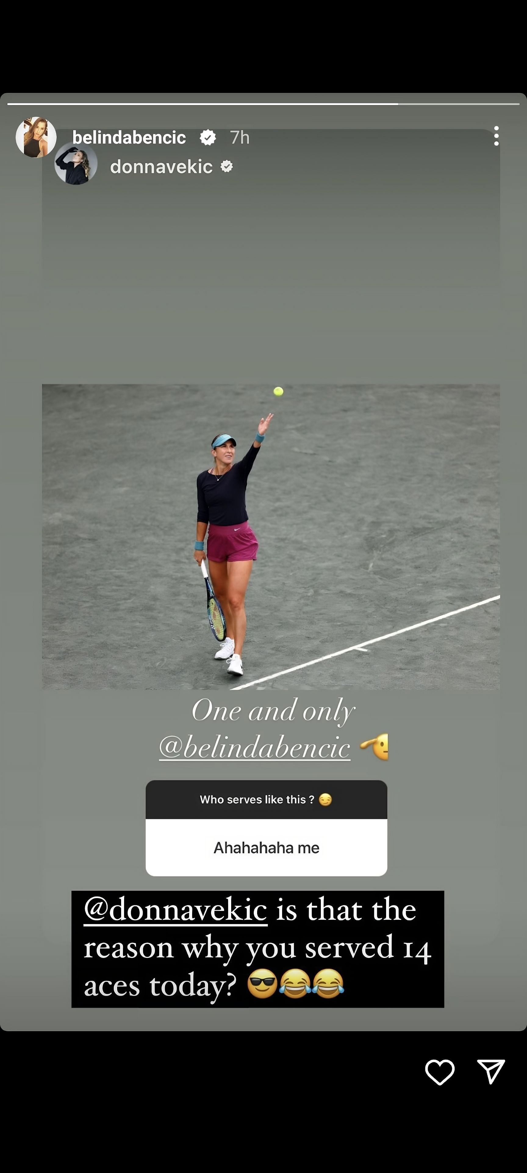 Bencic then reposted Vekic’s story on her account and added a cheeky comment: