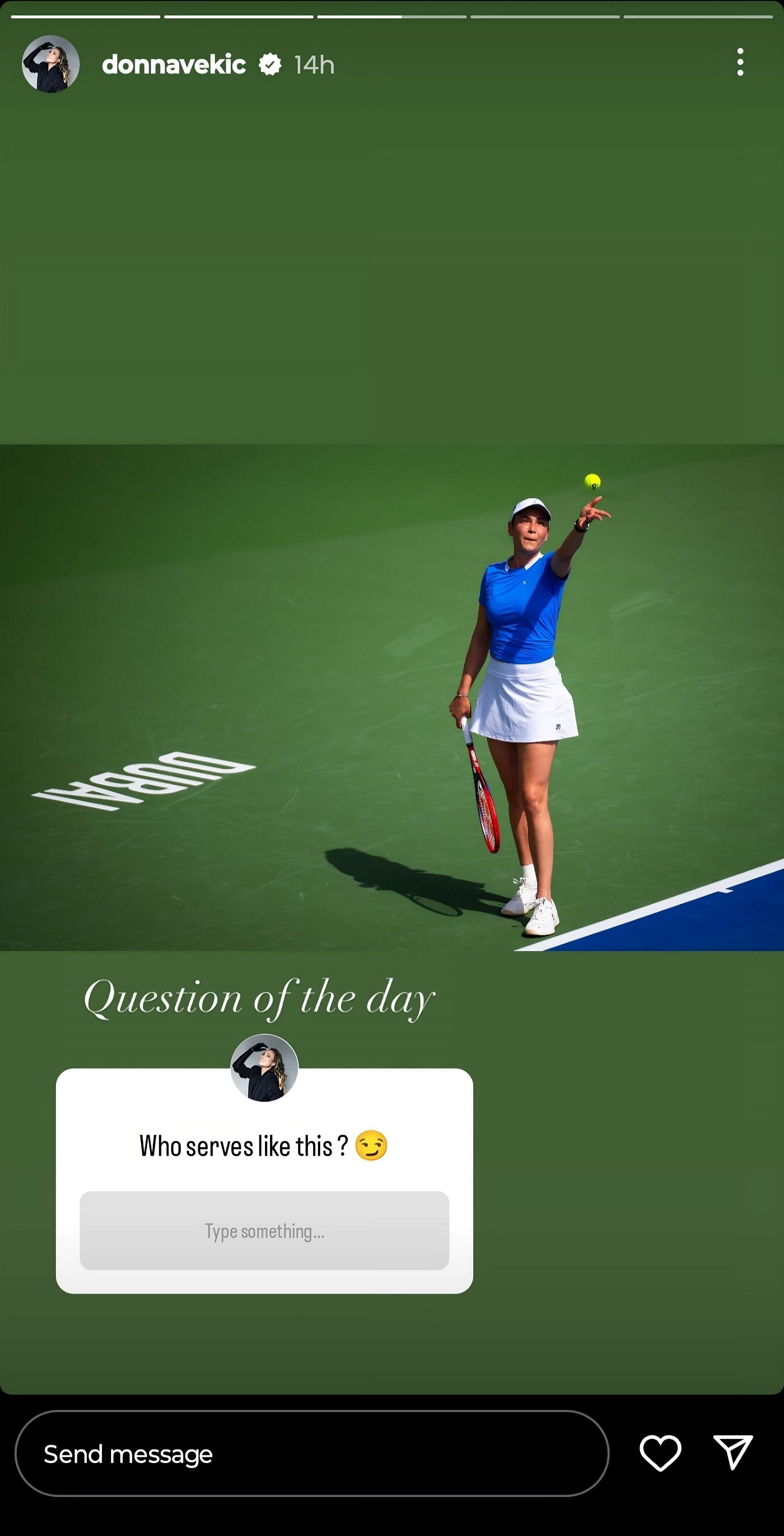 Vekic, currently ranked 31st in the world, posted a picture of herself serving during her second-round match against Aryna Sabalenka in Dubai, on her Instagram account on Tuesday, February 20. In the picture, the Croat can be seen tossing the ball in the air with one hand and holding the racket with the other, while looking intently at the ball.