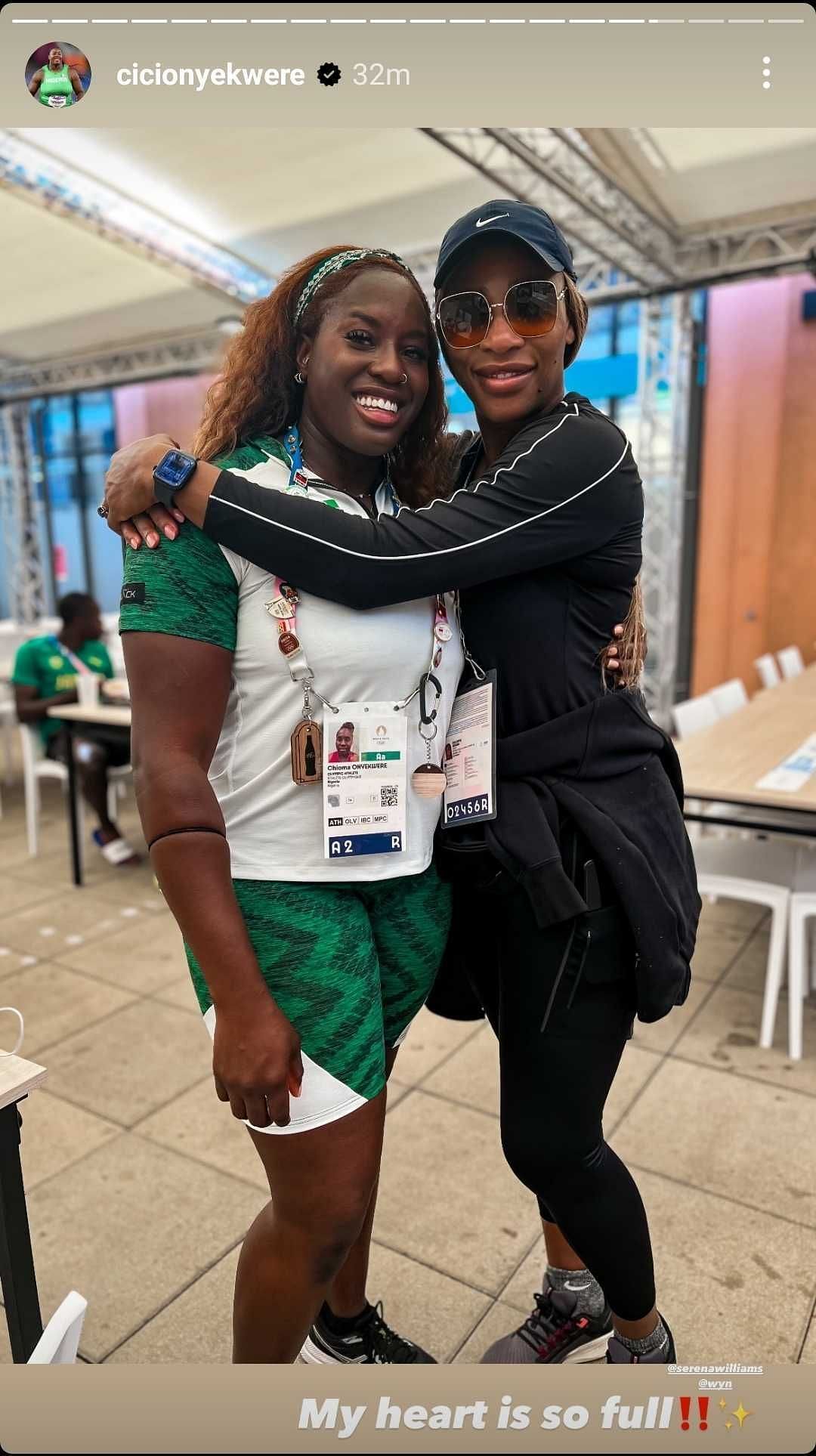 Nigerian discus thrower Onyekwere spotted Williams at the Village and posted a video about it on her Instagram Story. While recording Williams and her daughter Olympia in the background, she said: