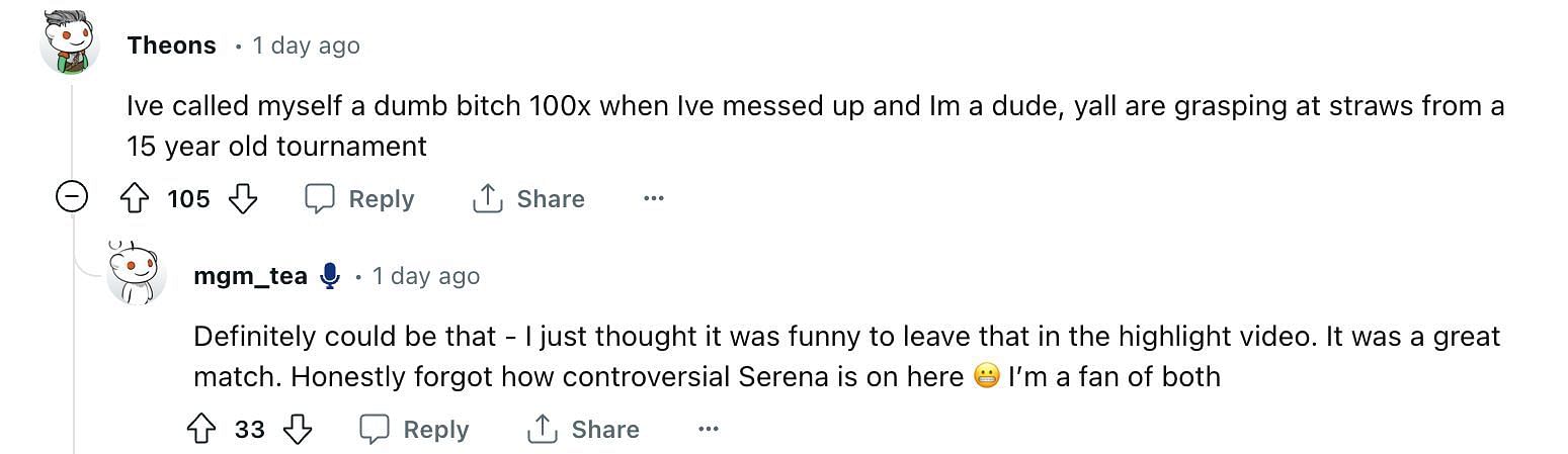 One fan claimed that Serena Williams had expressed her exasperation in a similar manner on multiple occasions when facing Henin. The fan also suggested that it was likely frustrating for the American to be overpowered by a player who was "half her size."
