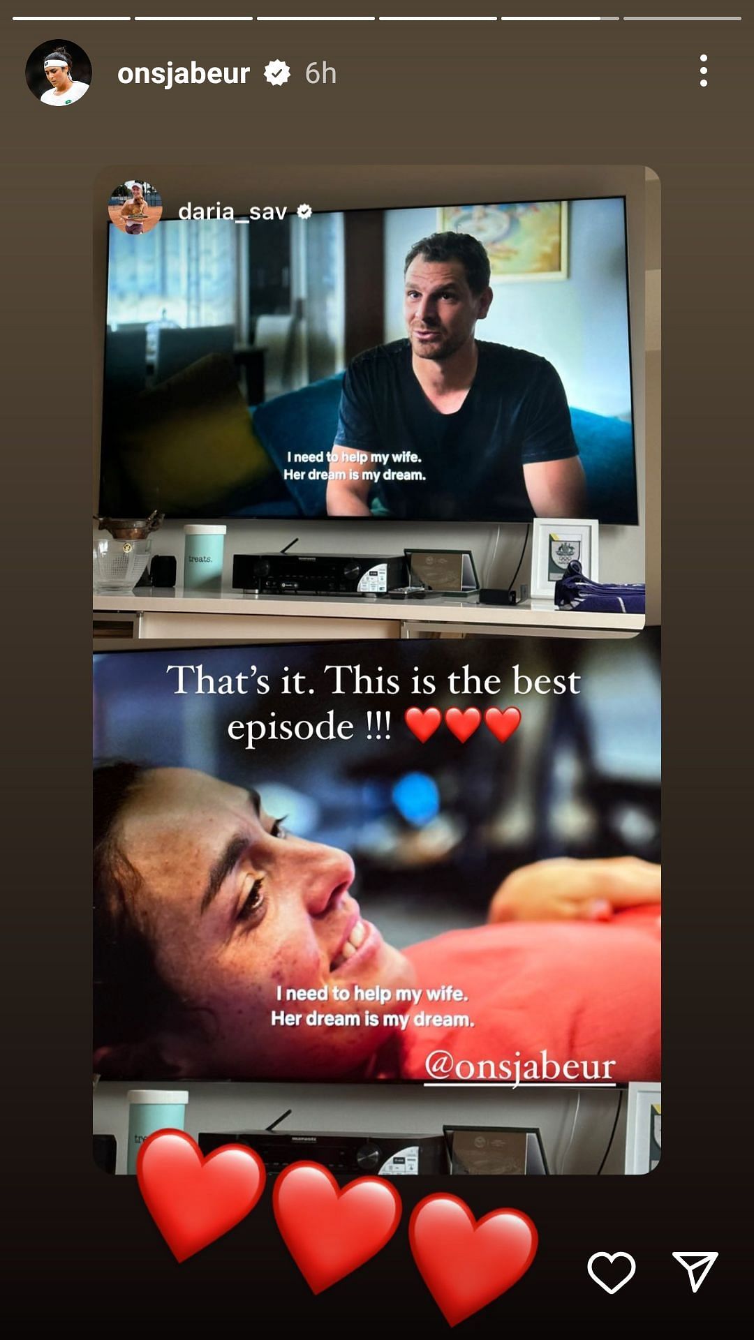 “That’s it. This is the best episode !!!” Daria Saville said as she shared the scene between Jabeur and her husband.
