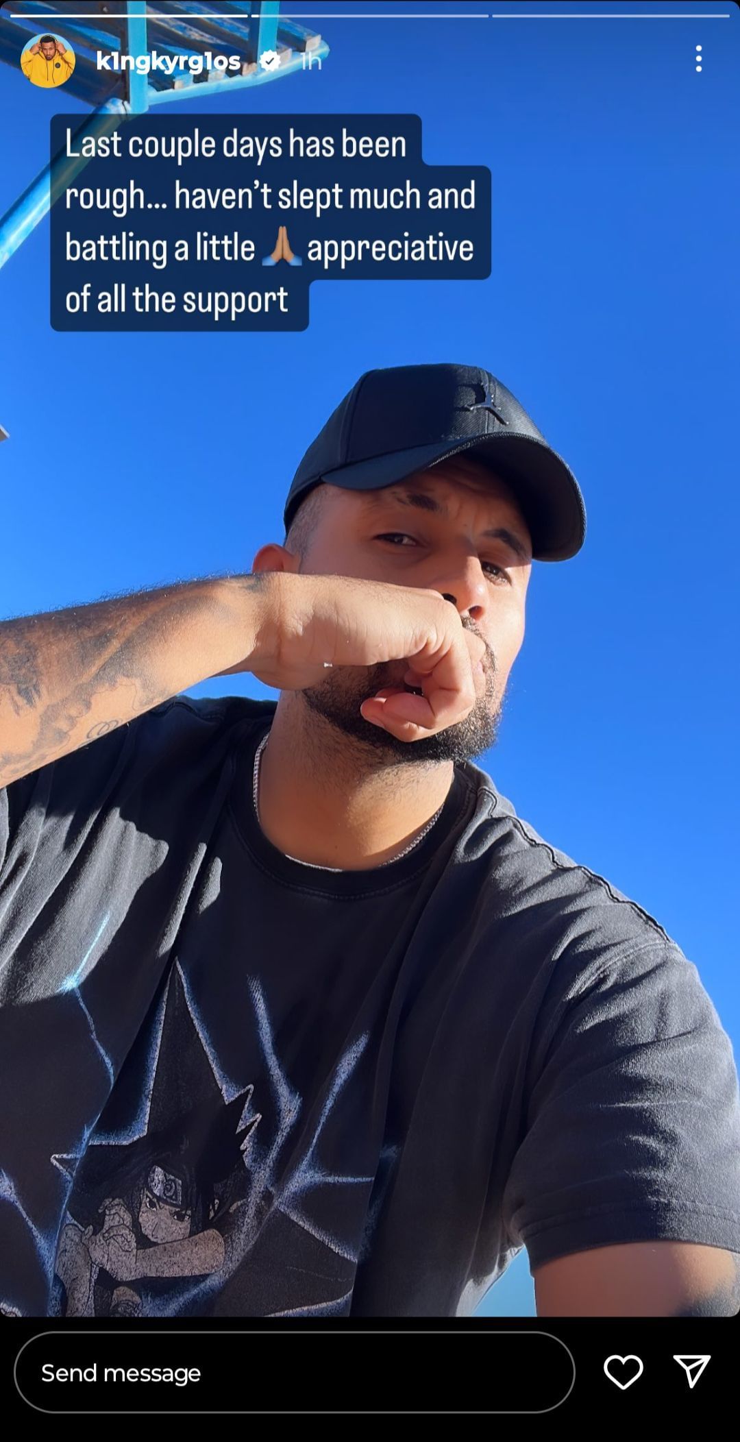 “Last couple days has been rough… haven’t slept much and battling a little. Appreciative of all the support,” the 28-year-old wrote on his Instagram story.