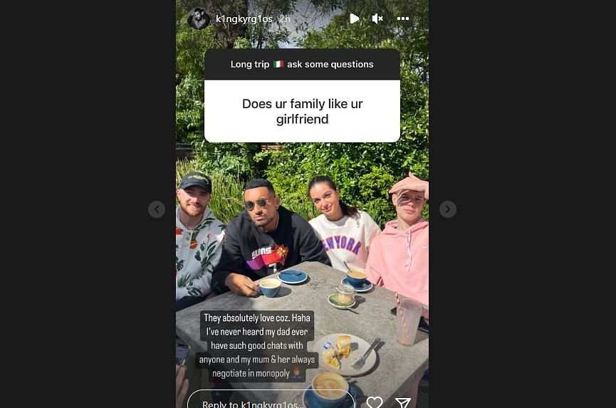 "I would like them asap. But Coz (Costeen Hatzi) would like to wait a year and a half," Nick Kyrgios said on his Instagram story.