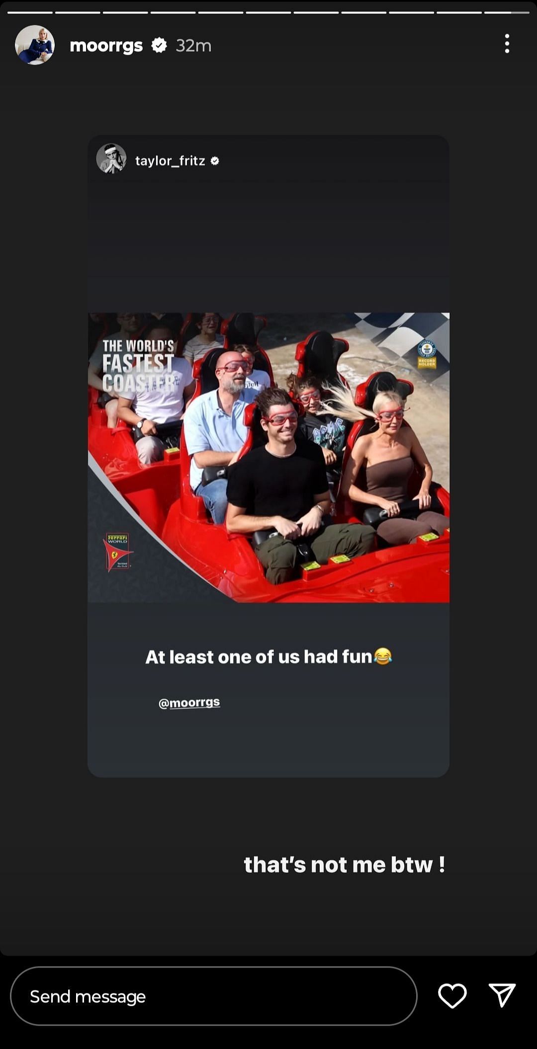 Taylor Fritz recently teased his girlfriend Morgan Riddle over her seeming fear of rollercoasters during their Abu Dhabi visit.
