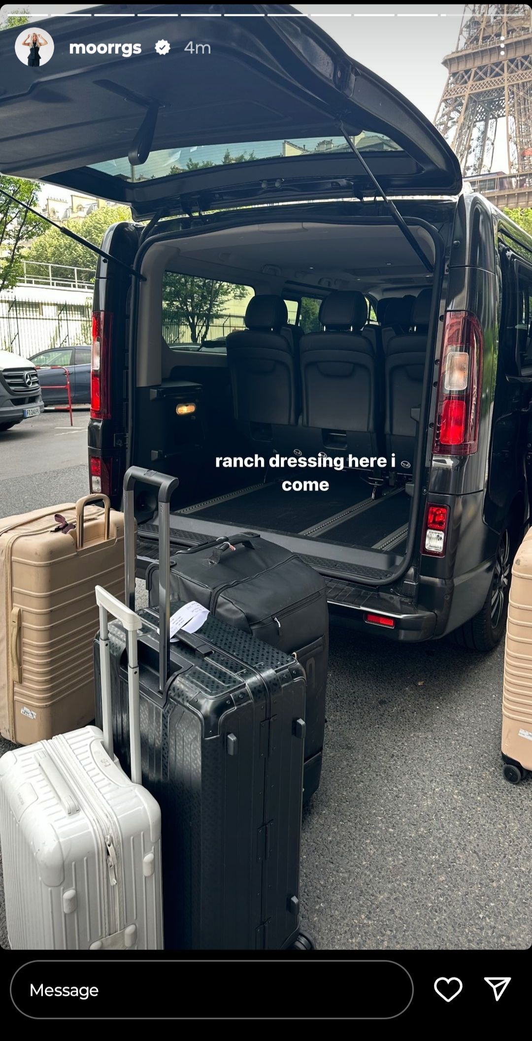 In another post, Riddle showed that her and Fritz's bags were all packed as they were about to leave Paris. This post came with the caption: