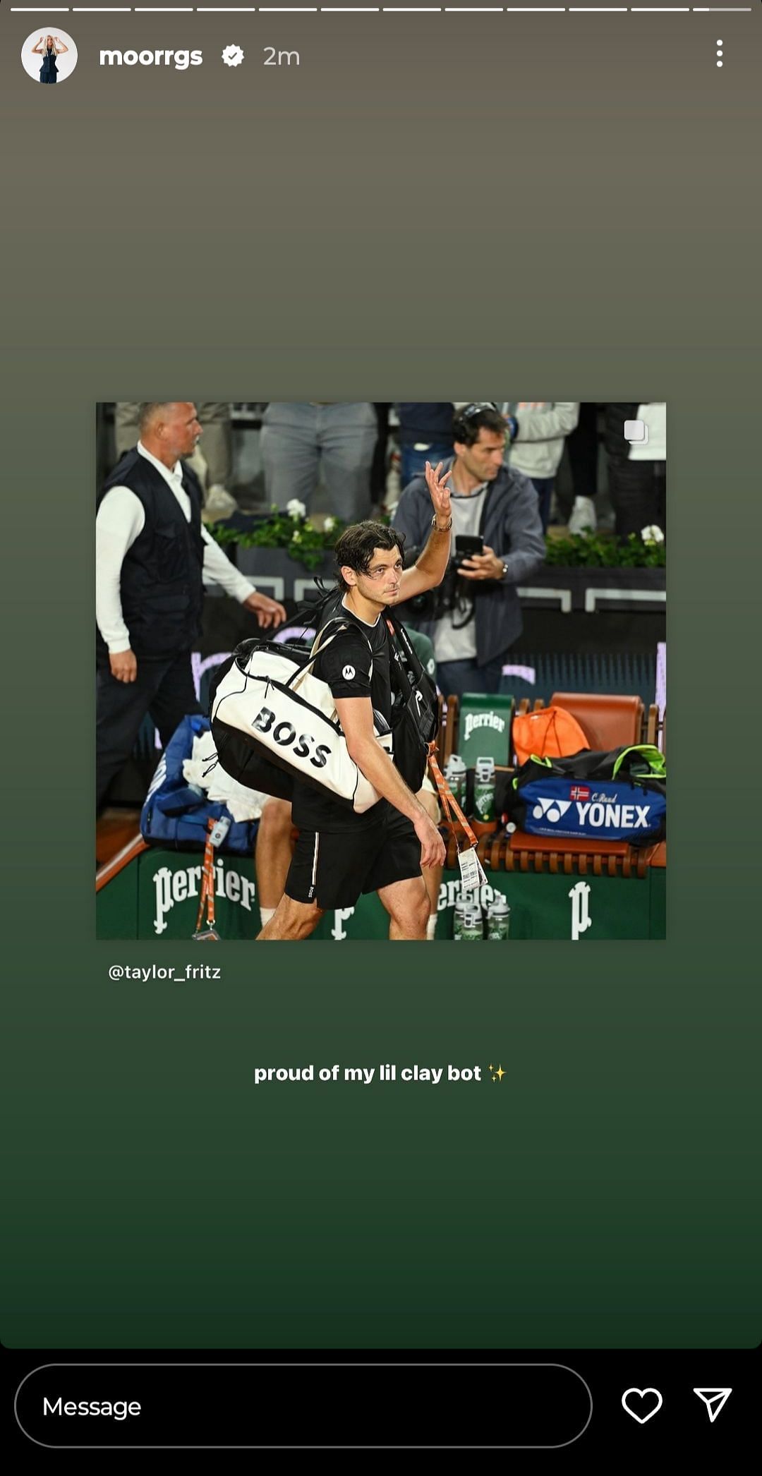 Yet another post featured an image of Taylor Fritz bidding farewell to the French Open crowd after his fourth-round exit. Riddle captioned this post: