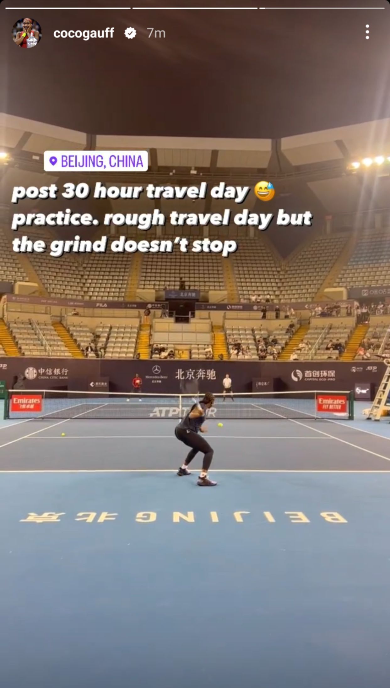 The American teen will next play at the WTA 1000 tournament in Beijing, which begins on Saturday (September 30). She has already set foot in the Chinese capital, going by her Instagram stories.