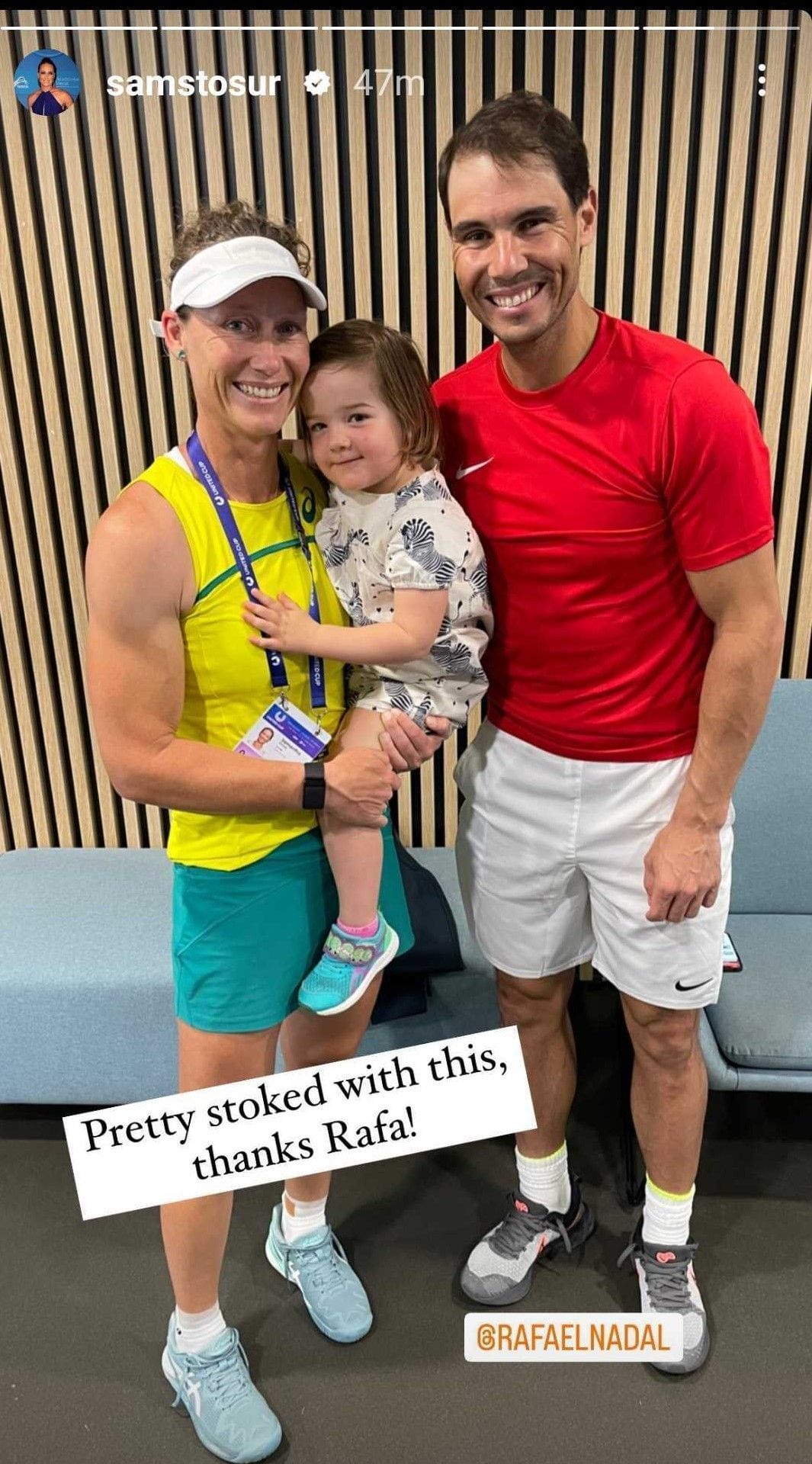 Rafael Nadal met with Samantha Stosur and her daughter during the ongoing United Cup, leaving the duo delighted during his time in Australia.