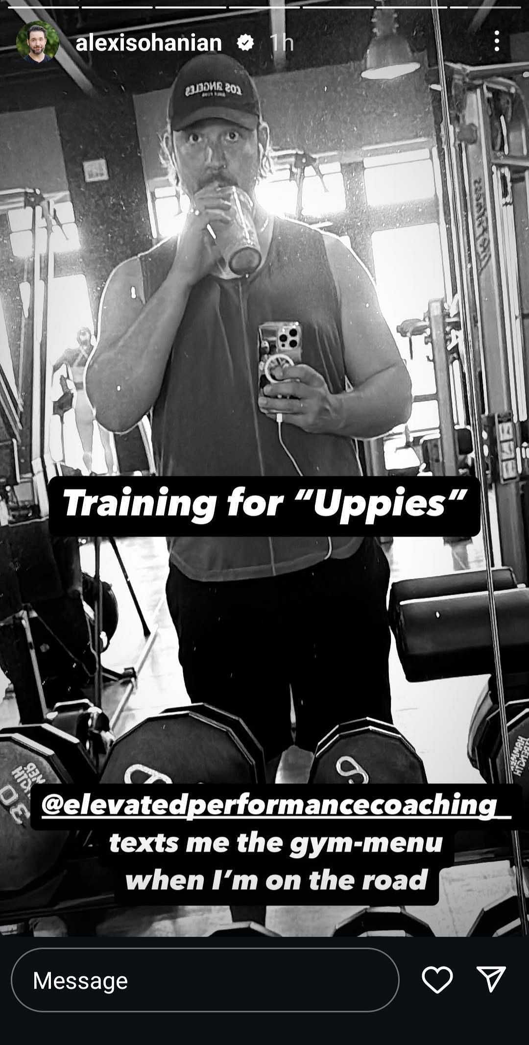 "Training for Uppies. Elevated Performance Coaching texts me the gym-menu when I am on the road," he captioned the story.