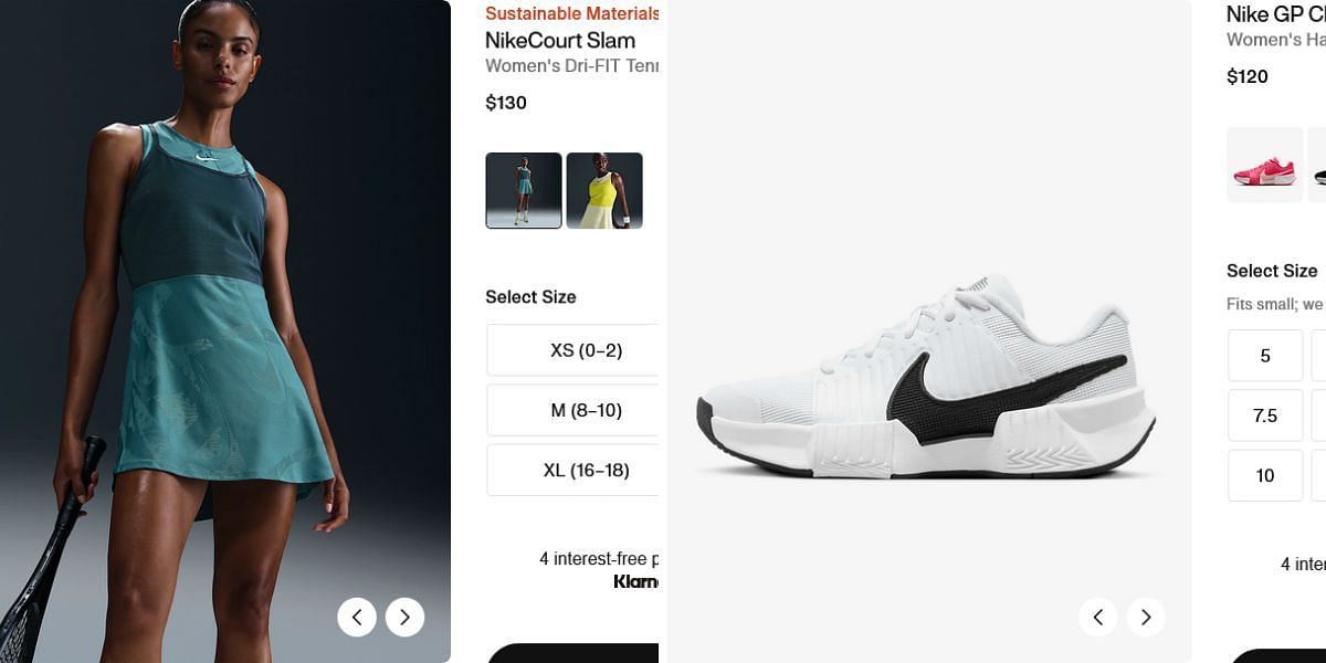 The dress can be paired with the Nike GP Challenge Pro shoes. They're available in four different colors- pink, white, black, and blue, and for $120. Other accessories, such as caps and socks, are priced at $28 and $22 respectively.