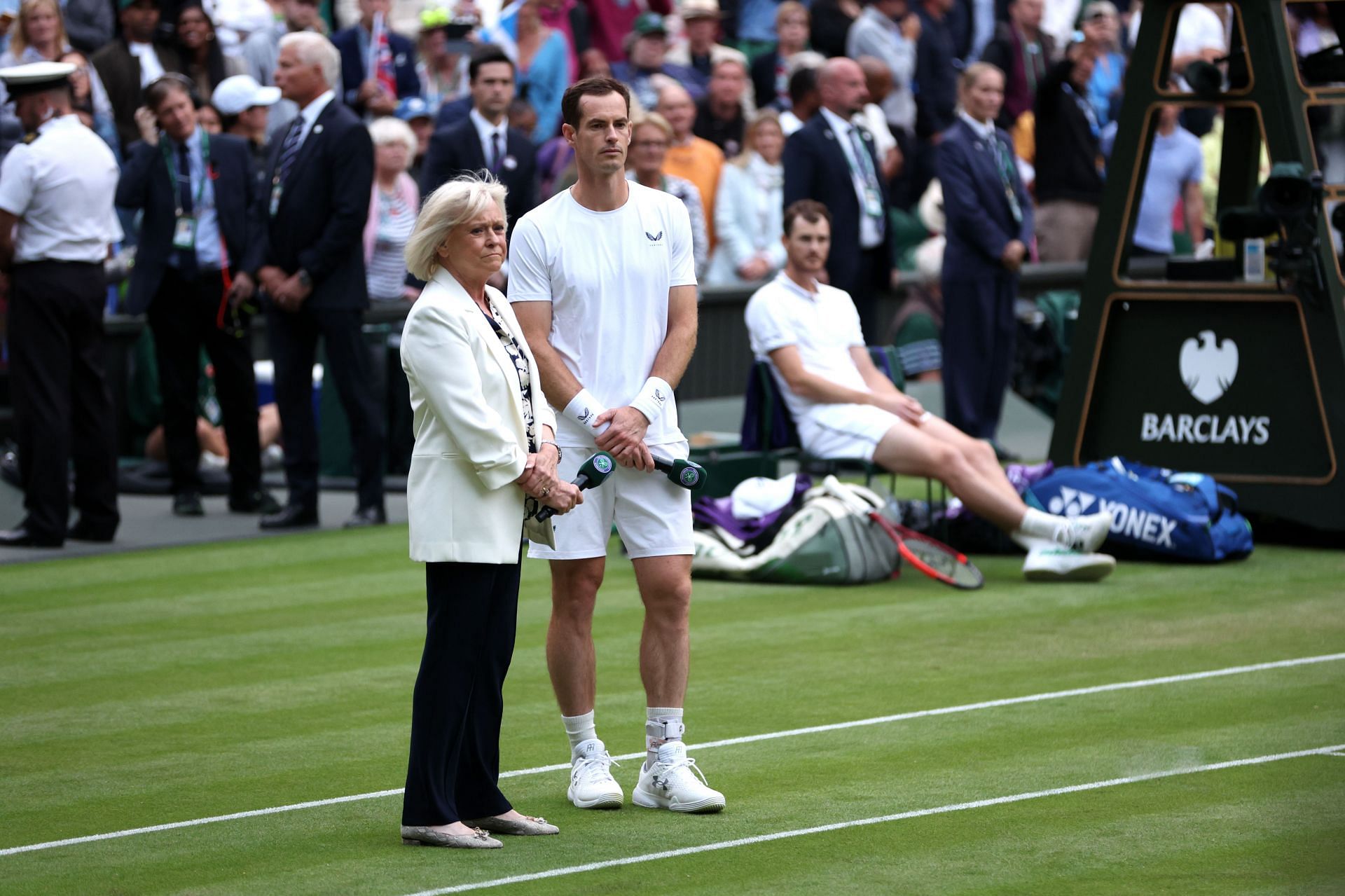 A special ceremony was held after the match to honor Murray, which featured the who's who of tennis. Roger Federer, Novak Djokovic, and a host of other players were present but the loudest applause was reserved for Barker, who returned to the venue after two years.