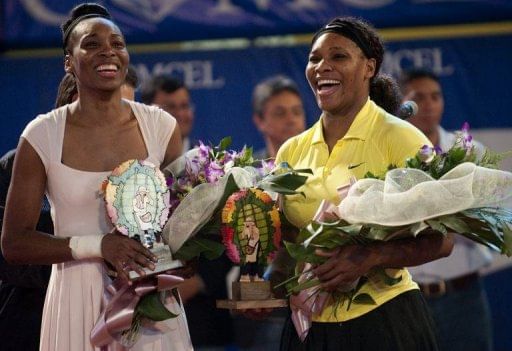 US tennis players Serena (R) and Venus Williams laugh after a 2011 exhibition match. After over a decade as the sport’s most dominant forces, both Serena and Venus head into Wimbledon, which starts on Monday, without a grand slam title between them since 2010.