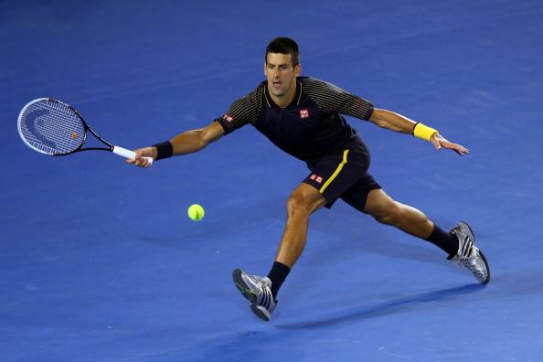 MELBOURNE, AUSTRALIA – JANUARY 20: Novak Djokovic of Serbia plays a forehand in his fourth round match against Stanislas Wawrinka of Switzerland during day seven of the 2013 Australian Open at Melbourne Park on January 20, 2013 in Melbourne, Australia (Photo by Julian Finney/Getty Images)