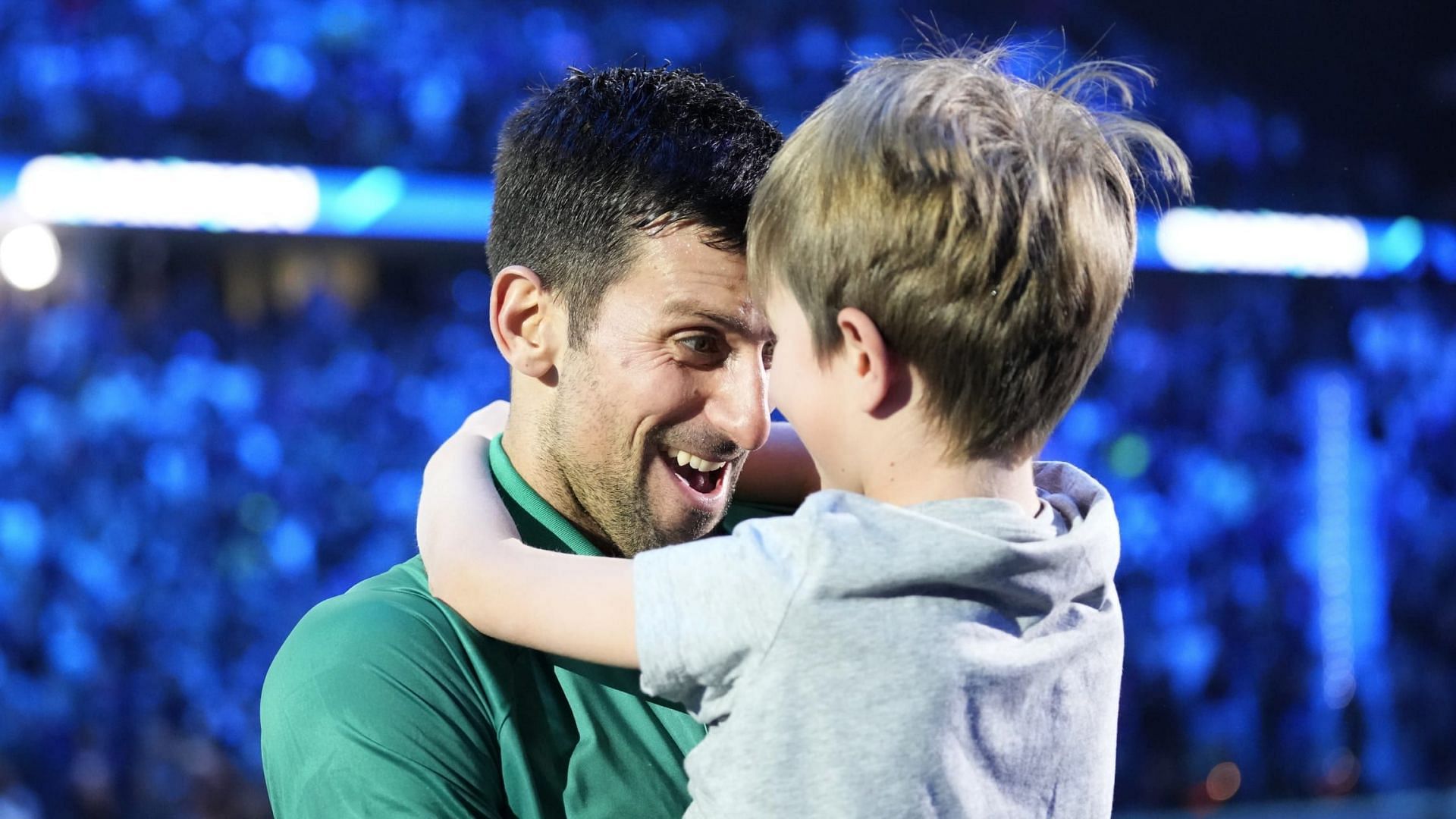 He celebrated the moment with his son Stefan (pictured above), daughter Tara, wife Jelena and other team members on and off the court. The 35-year-old was ecstatic to end a difficult year on a high and didn't shy away from showing his emotions at the Pala Alpitour in Turin.