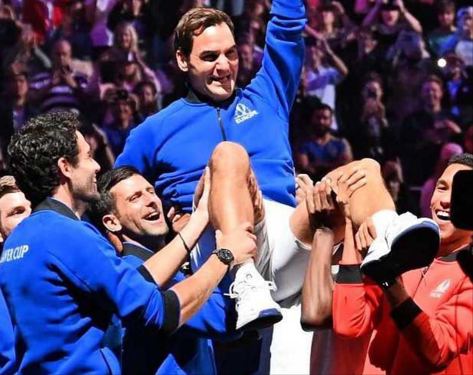 Roger Federer, Rafael Nadal, Novak Djokovic and Andy Murray teamed up together for the first time in over a decade at the 2022 Laver Cup in London. They represented Team Europe and took on the likes of Frances Tiafoe, Taylor Fritz, Felix Auger-Aliassime, and a few other players on the men's tour who represented Team World. The event was supposed to be Roger Federer's last ever competitive appearance, as he called the curtains on his astonishing tennis career in London. It was an emotional moment for everyone present at the O2 Arena, as the Swiss Maestro completed his final match at the Laver Cup. Djokovic and the other players present for the occasion celebrated the moment by picking up Federer on their shoulders and giving him a lap of honor, as seen in the photo above.