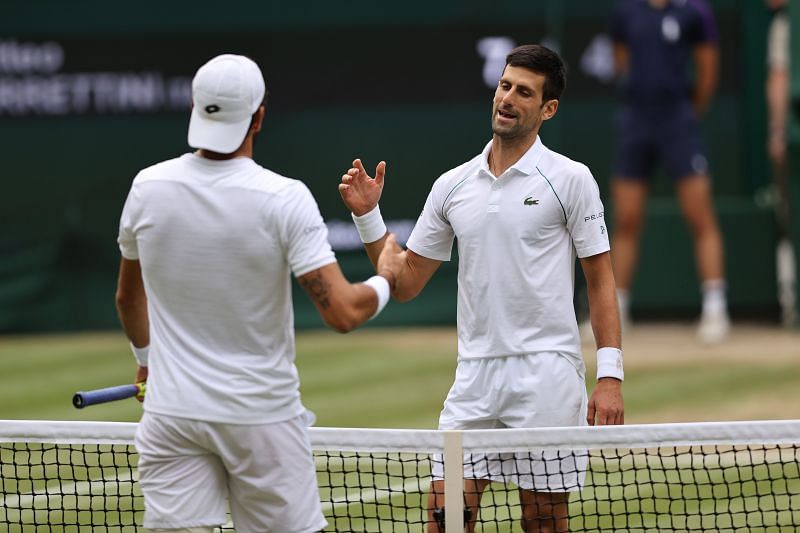 For most of the first three sets Novak Djokovic played largely reactive tennis, allowing Matteo Berrettini to self-destruct out of pressure and frustration. But by the middle of the fourth set a sense of urgency crept into Djokovic's demeanor, almost as though he was determined to not let the match go five sets.