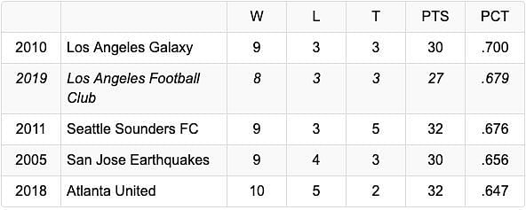 As LAFC has set its course toward a number of historical performances over the 2019 MLS season, the club is also nearing one of the all-time best records of any club in a difficult situation – playing on the road.