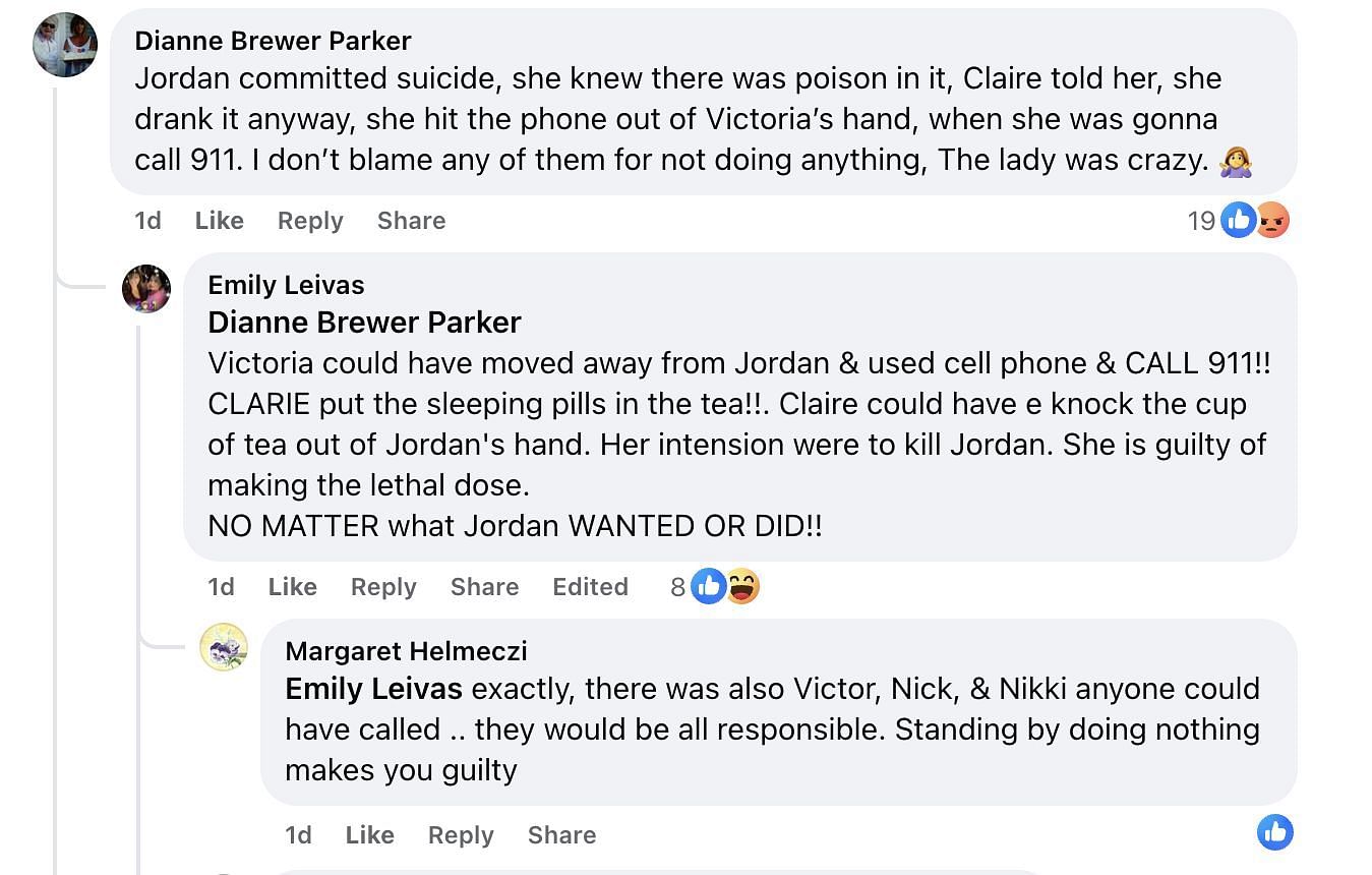 The big question is whether Claire is responsible for Jordan’s fate. Some fans think Jordan made her own choice by drinking the tea, even after being warned. Others argue Claire’s decision to poison the tea shows she’s at fault. This debate has taken over social media, with everyone picking sides.