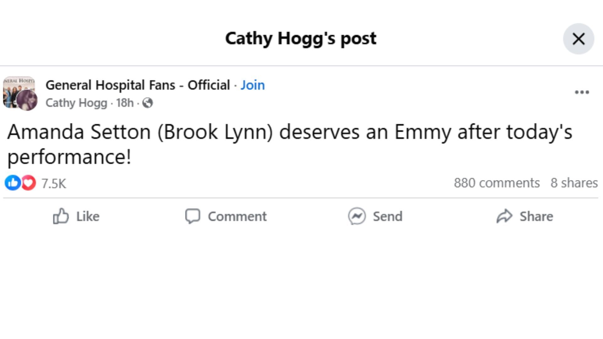 "Amanda Setton (Brook Lynn) deserves an Emmy after today's performance!"