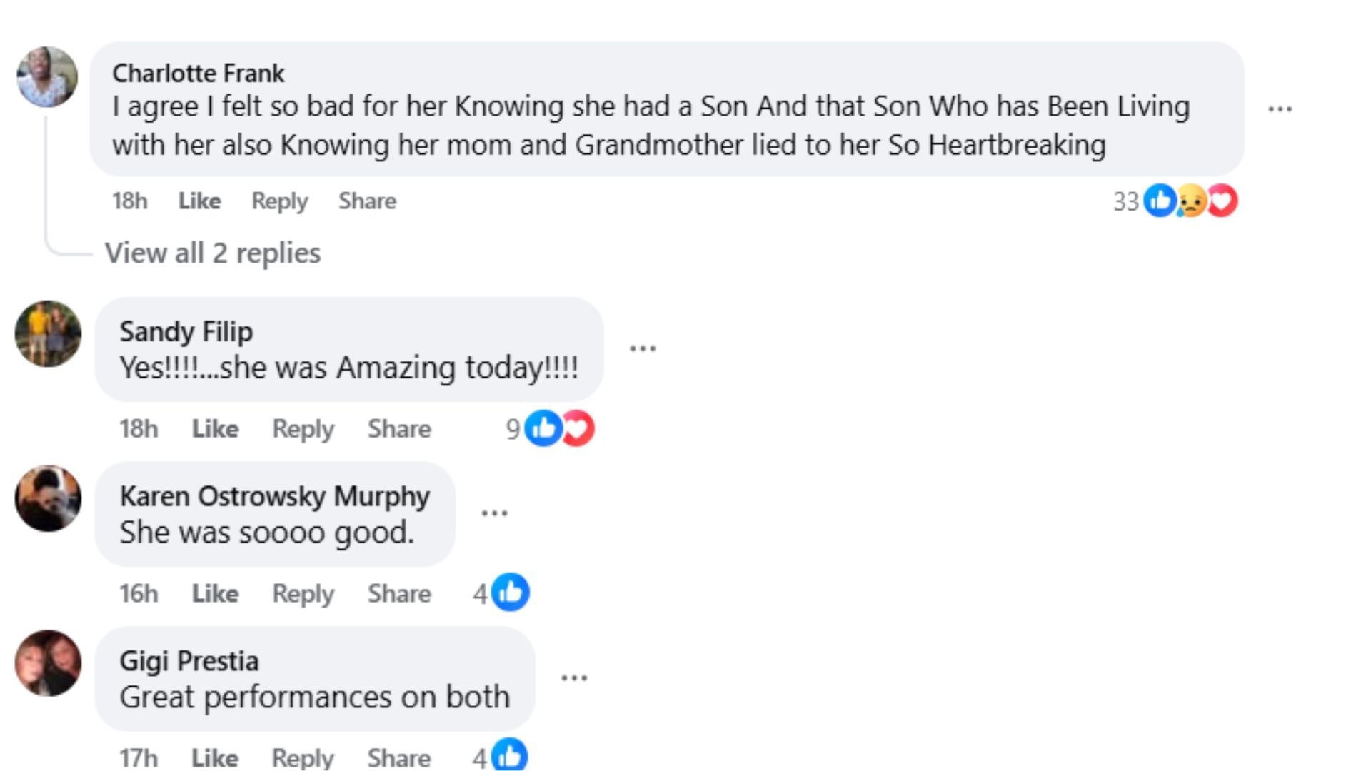 Many fans of the daytime soap opera General Hospital shared their thoughts on the discussion post. Several fans agreed with Cathy’s opinion and praised the actress for her performance. They commented,