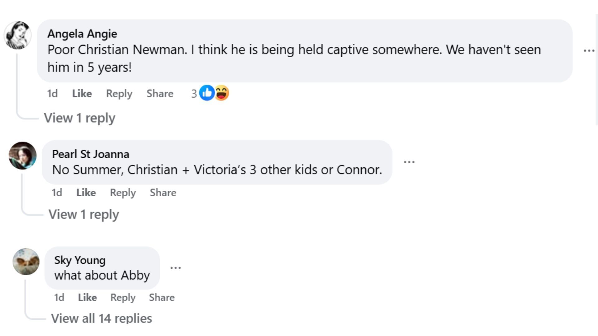 "I thought the locket with Victoria’s and Claire’s photo was wrong to give. What about Katie, Johnny and Reid? They don’t count anymore? They are Victoria’s children too except the Newman’s don’t have enough money to send Reid a plane ticket!"