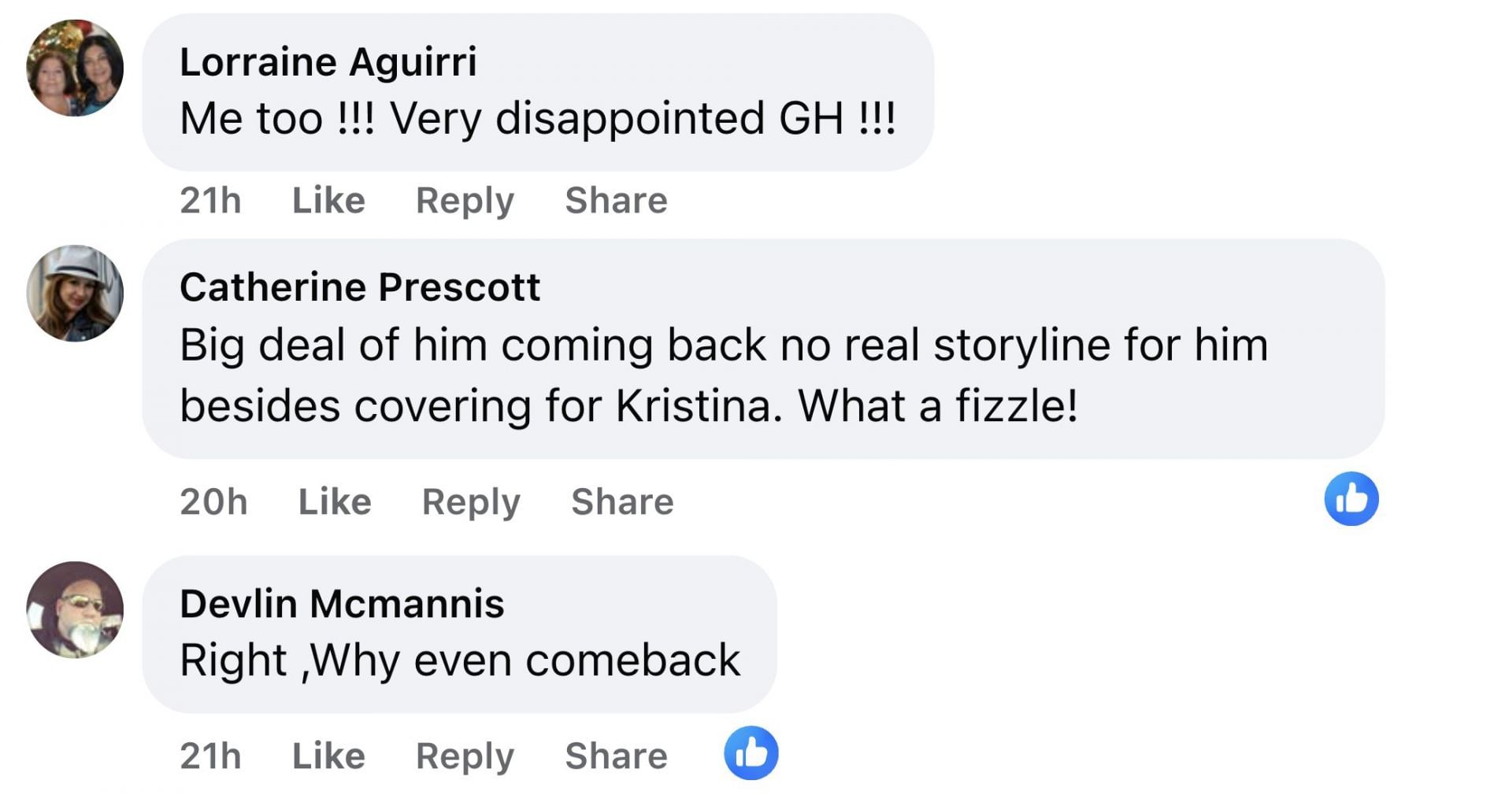 Since Jackson's exit was confirmed, fans of General Hospital took to social media to wonder why the creators even brought him back. Many said that they were disappointed and felt let down by how the character was handled while others suggested they could have brought back a different character instead.
