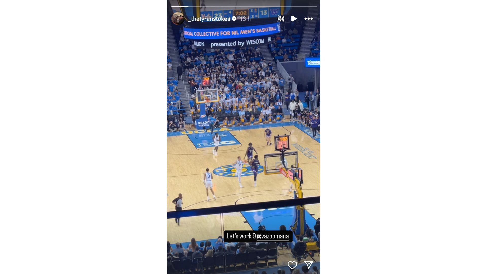 5-star small forward Tyran Stokes attended the Washington Huskies' matchup against UCLA at Pauley Pavilion, showing support for his former Prolific Prep High School pal, Zoom Diallo, on December 4. Stokes shared a clip of Diallo’s play on his Instagram story, tagging him with a three-word message: