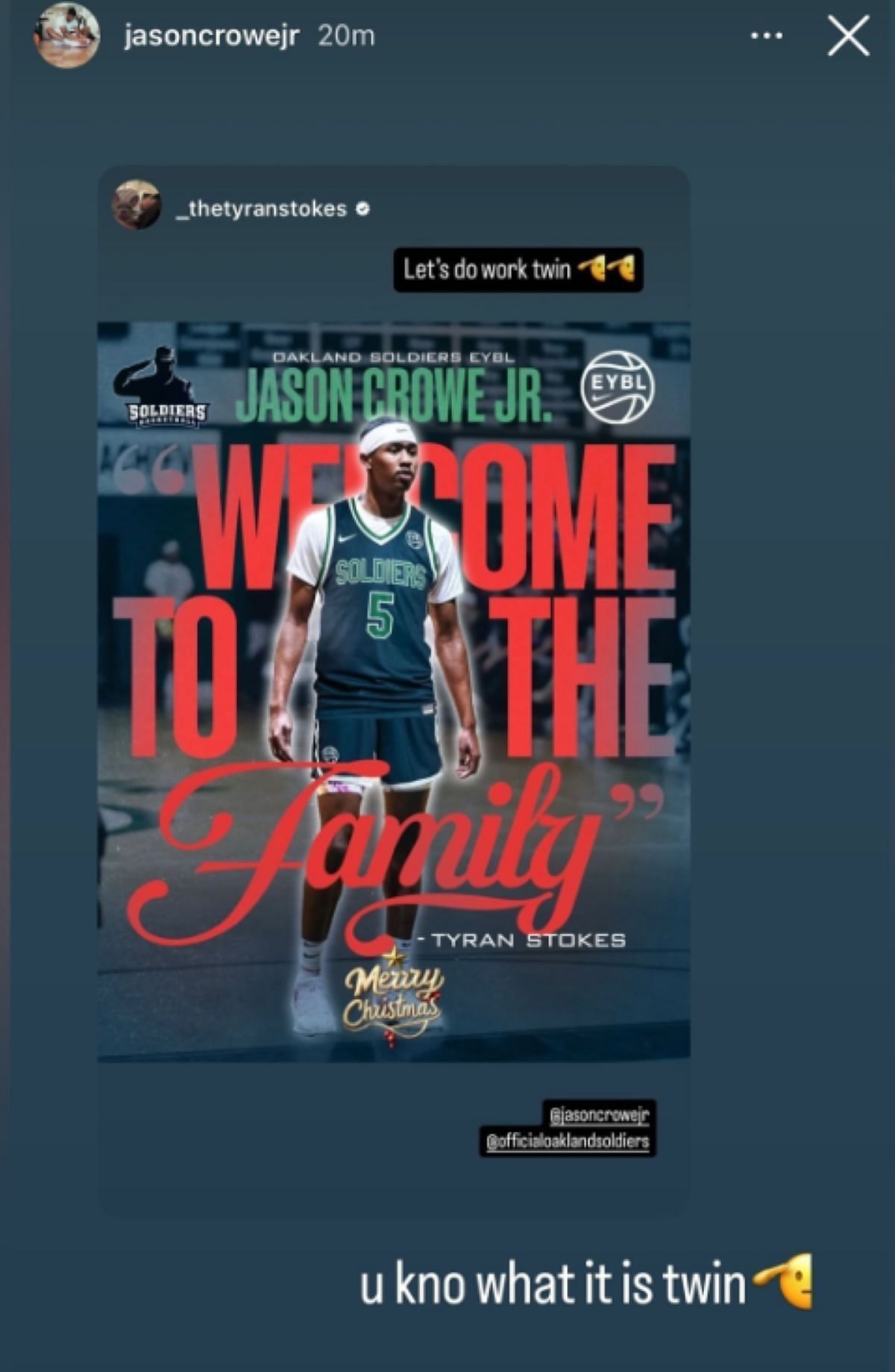 Jason Crowe Jr., the No. 9 prospect in the Class of 2026, was welcomed by the two-time Nike EYBL Peach Jam Champions Oakland Soldiers officially on their Instagram page on Dec. 26. The Inglewood High School player will join Notre Dame small forward and No. 2 recruit in the 2026 Class Tyran Stokes.