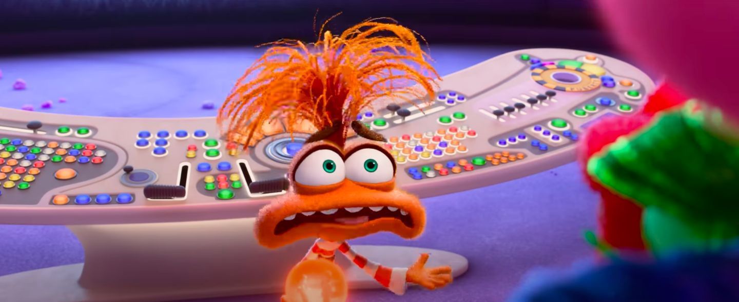 In the heartbreaking climax of Inside Out 2, Anxiety pushes Riley too hard, and she loses control of herself and spirals (shown vividly through a hurricane of orange around the emotion console). Joy pushes through the whirlwind of Anxiety's emotions and gets through to her, reminding her that they don't get to choose who Riley is.