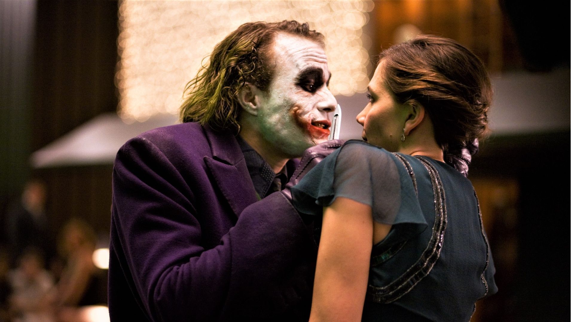 When the Joker crashes Bruce Wayne’s fundraiser in The Dark Knight, it’s not just against a chaotic backdrop. He’s making a point. While Harvey Dent is absent, Rachel Dawes stands her ground. The result is one of the film’s most unsettling sequences. The Joker holds Rachel’s face and begins to regale her with another version of why he got his scars.