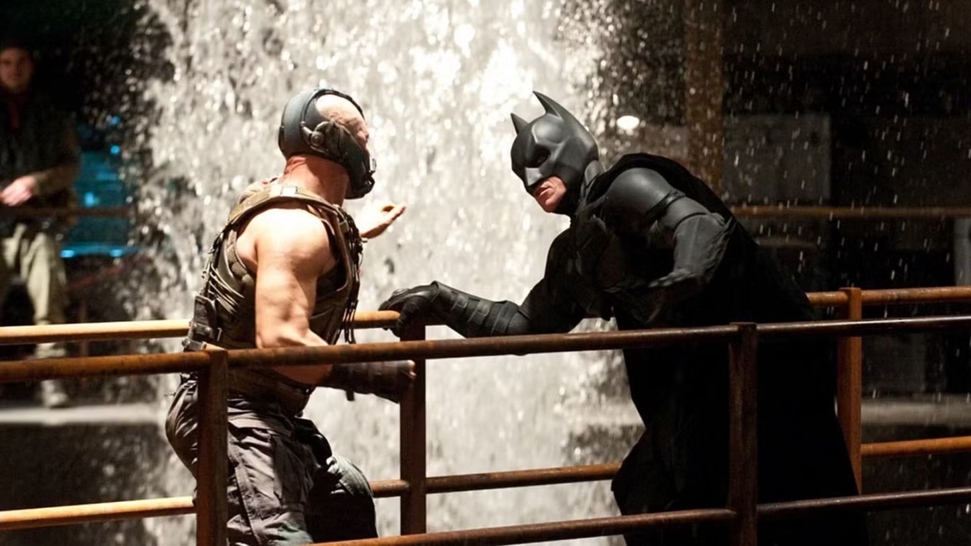 While Ra’s al Ghul and the Joker test Bruce’s mind and morals, Bane challenges him in the most primal way possible: pure, unrelenting strength. There’s no score. No distractions. Just the sound of fists and failure echoing through the shadows of the sewer. Bruce throws everything he has—tech, tactics, muscle—but nothing lands. Bane shrugs off smoke bombs and lands the final blow with a backbreaker that’s ripped straight from the comics. The myth of Batman shatters here, so Bruce can figure out how to rebuild.
