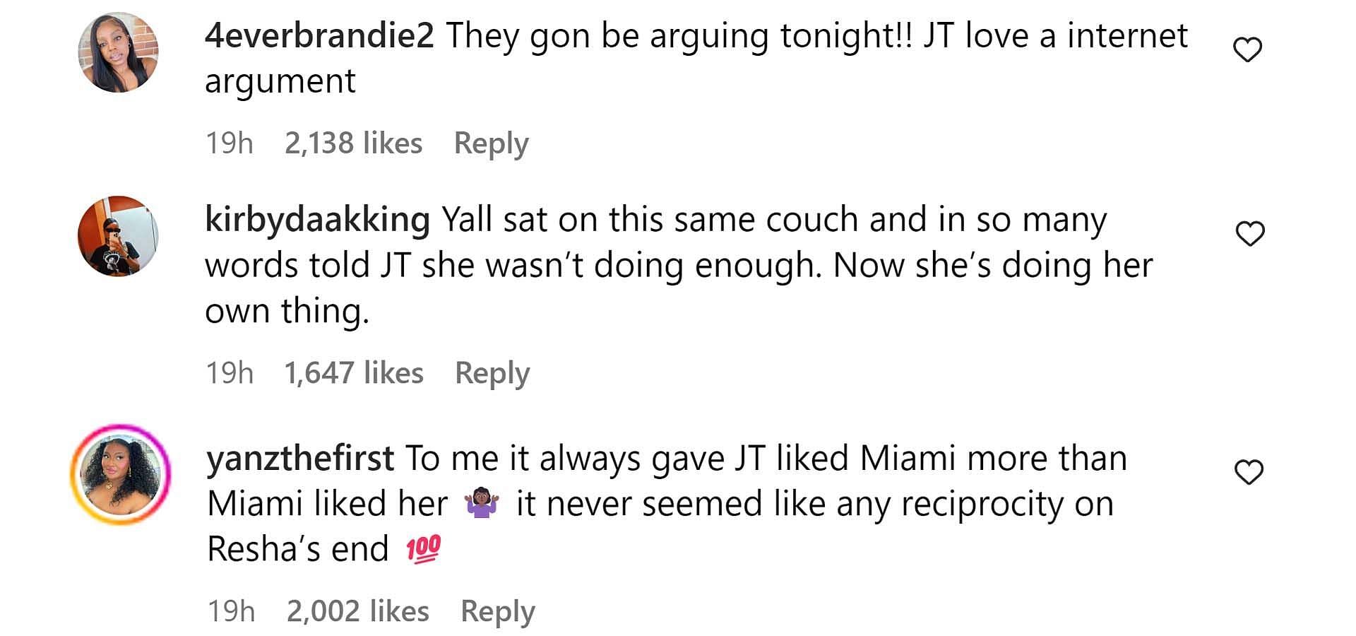 Many sided with Yung Miami, stating JT was the problem. Here are some comments seen under @theneighborhoodtalk's post on Instagram.