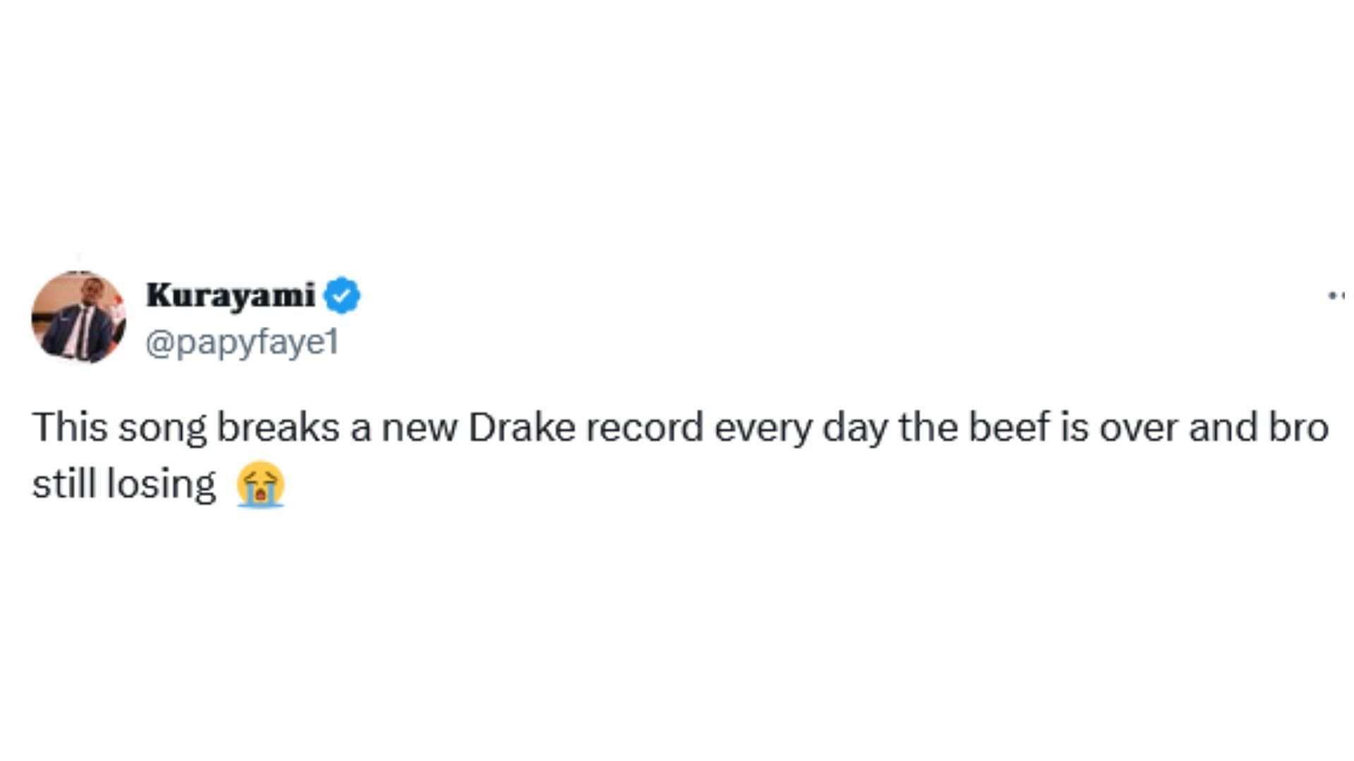 “This song breaks a new Drake record every day the beef is over and bro still losing", one user said.