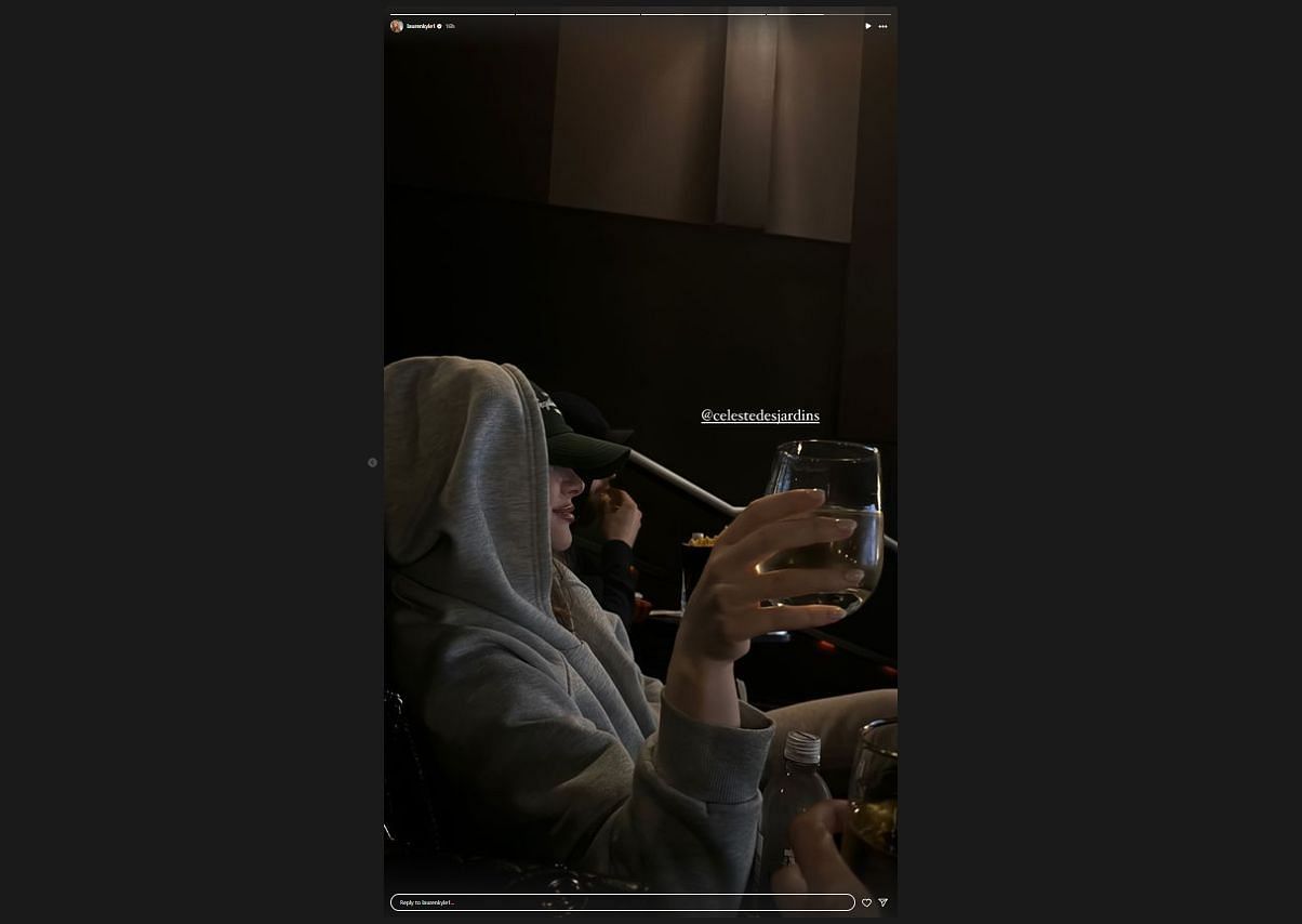 Leon Draisaitl and his partner, Celeste Desjardins, were also captured in the second image shared by Lauren Kyle. Here in the image, we can see Desjardins, who is a Canadian actress by profession, with a glass of beer and in the background, we see a little glimpse of Draisaitl focused on the movie at hand, exactly like the puck during games.