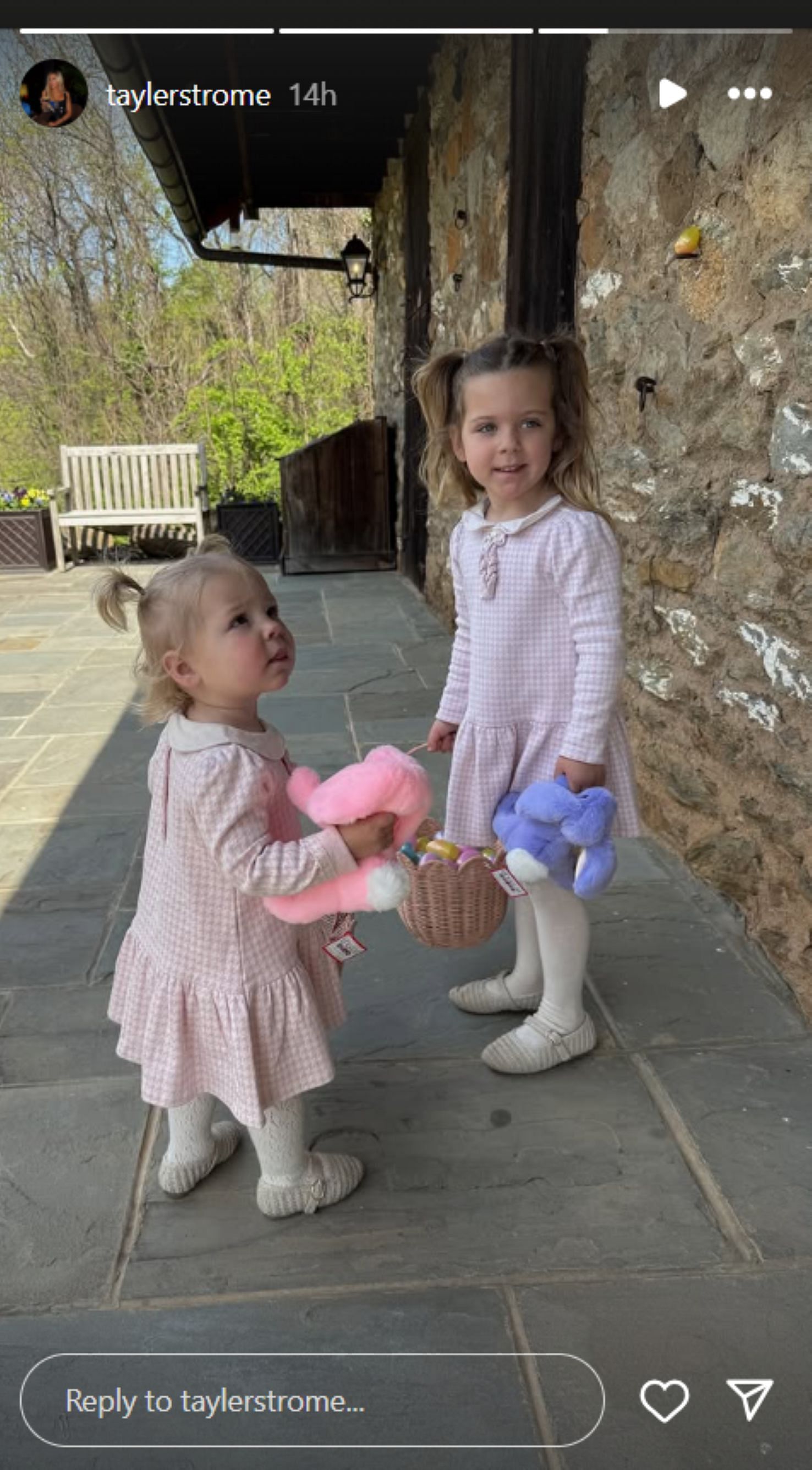 One photo showed Dylan handing a basket to his younger daughter, Emerson, as the family spent time outdoors.