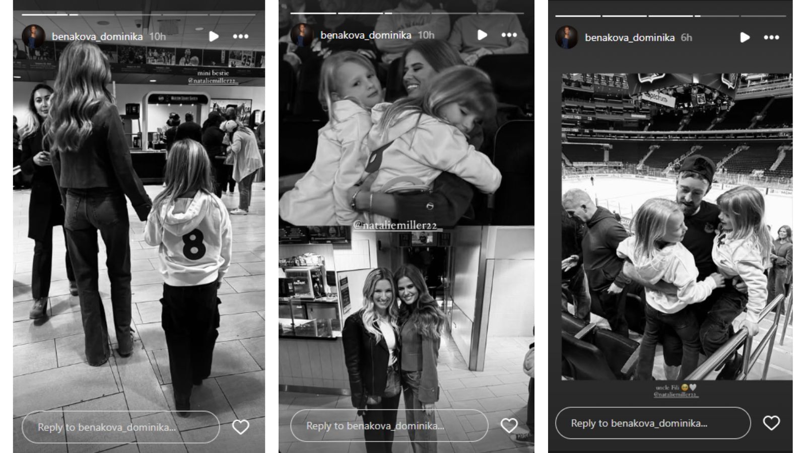 The final story showed Miller’s daughters with Filip Hronek near the rink. Hronek was holding both girls in his arms and the caption referred to him as "Uncle Fili." The picture was probably taken after the game with the arena clearing out.