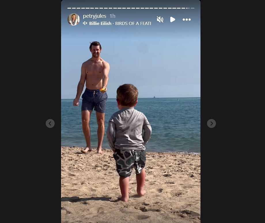 Shirtless Jeff Petry was featured in a couple of last stories. He can be seen calling for Blake and taking him on the beach tour wrapped around his arms. Meanwhile, his brothers had fun playing there.