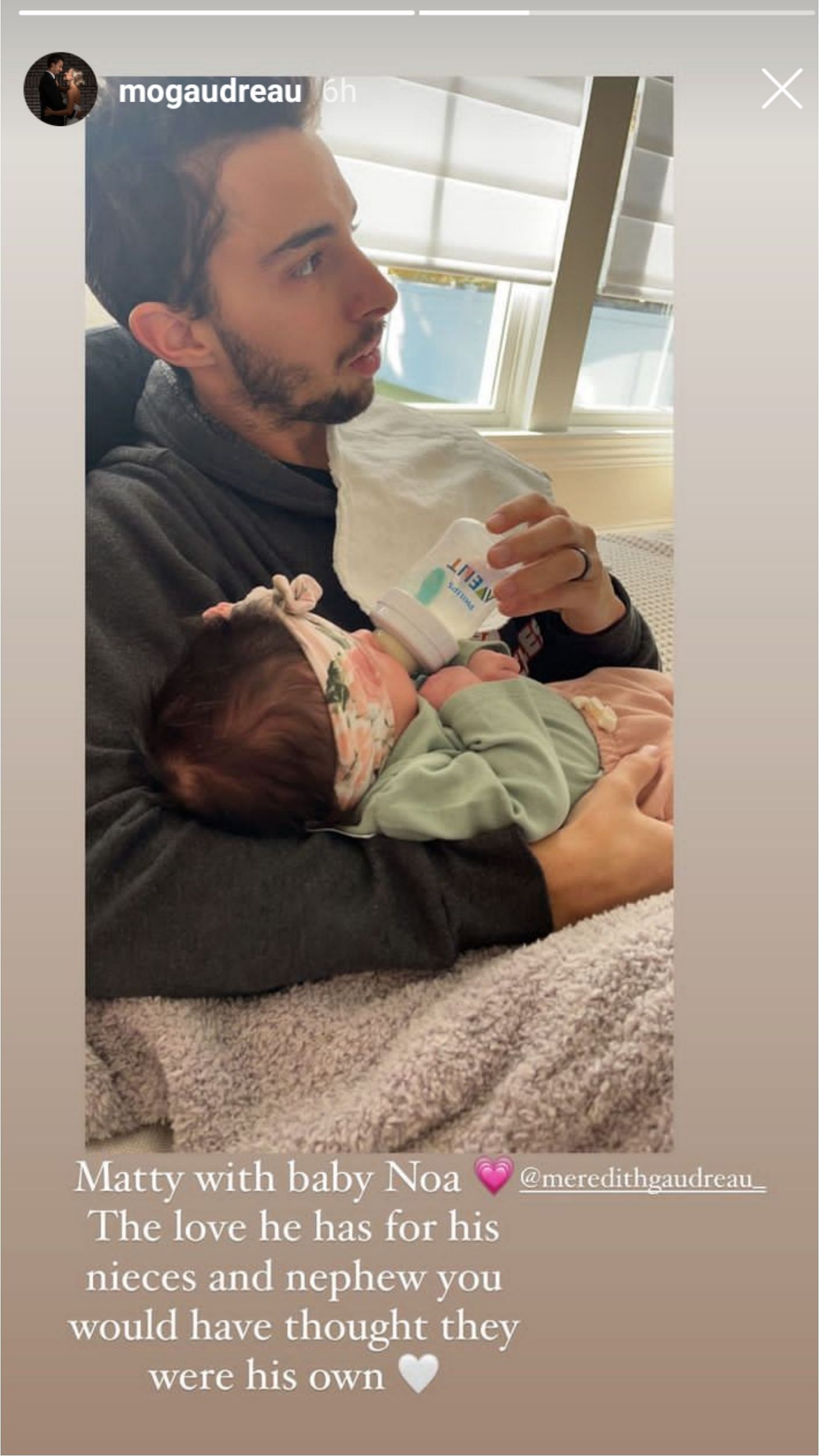 The story, originally posted by Madeline Gaudreau on Tuesday, featured a touching image of Matthew lovingly feeding baby Noa. The caption read: