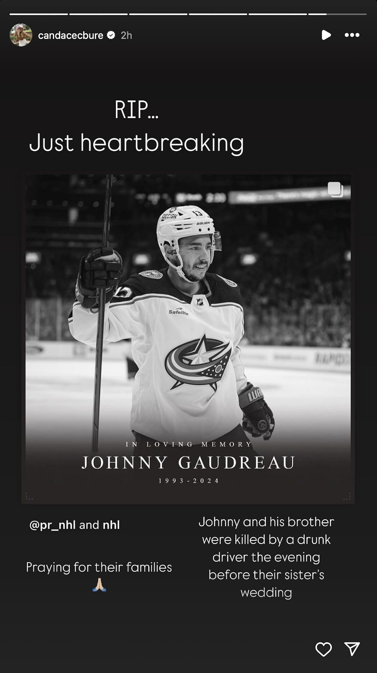Immediately, the NHL community began to share messages of support, rallying around Johnny's wife and their two kids as they dealt with the tragedy. NHL vet Valeri Bure's wife Candace also joined in and gave her heartfelt message.